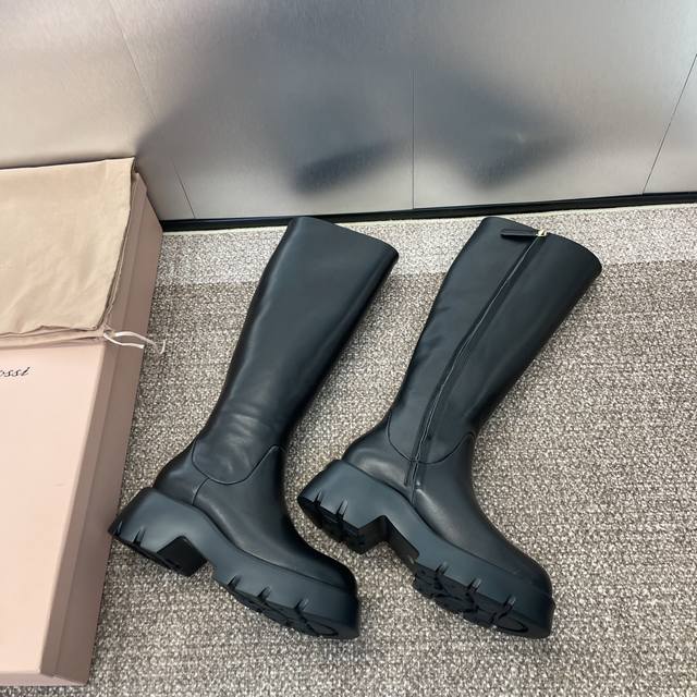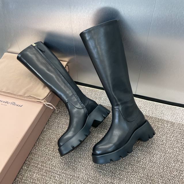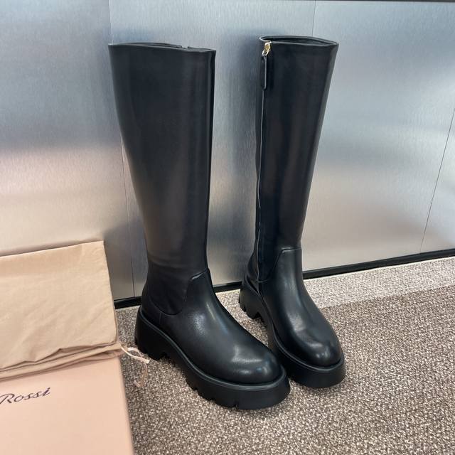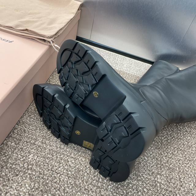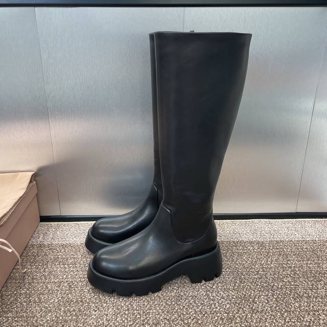 Gianvito Rossi 塞乔.罗茜2024冬季新款侧拉链高筒女靴 Gr厚底圆头粗跟机车骑士长靴