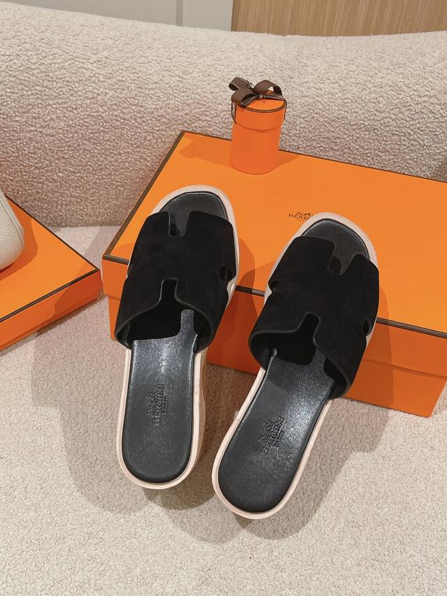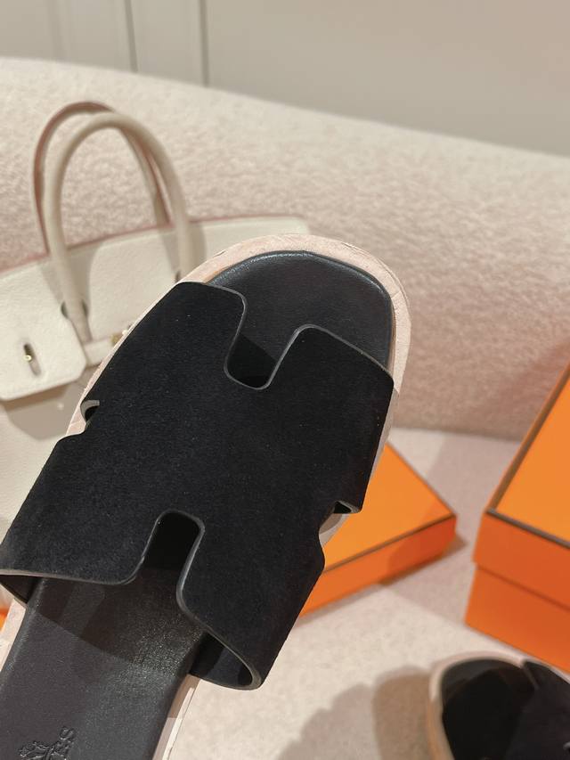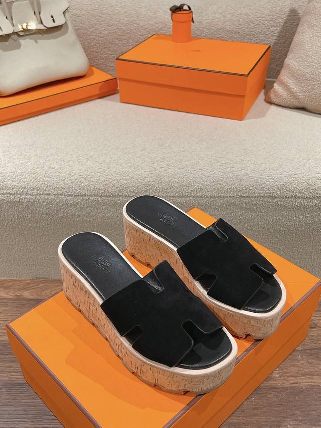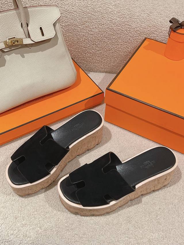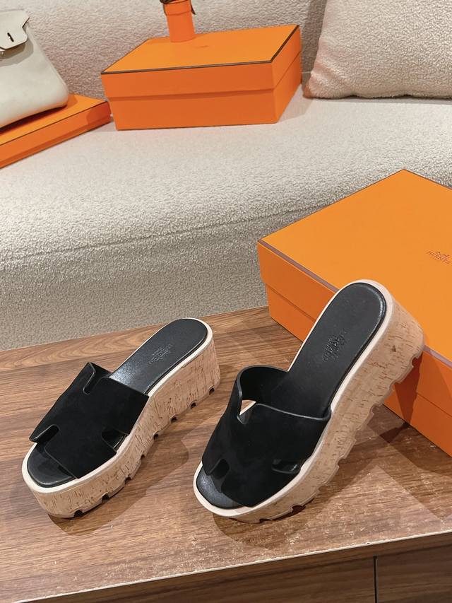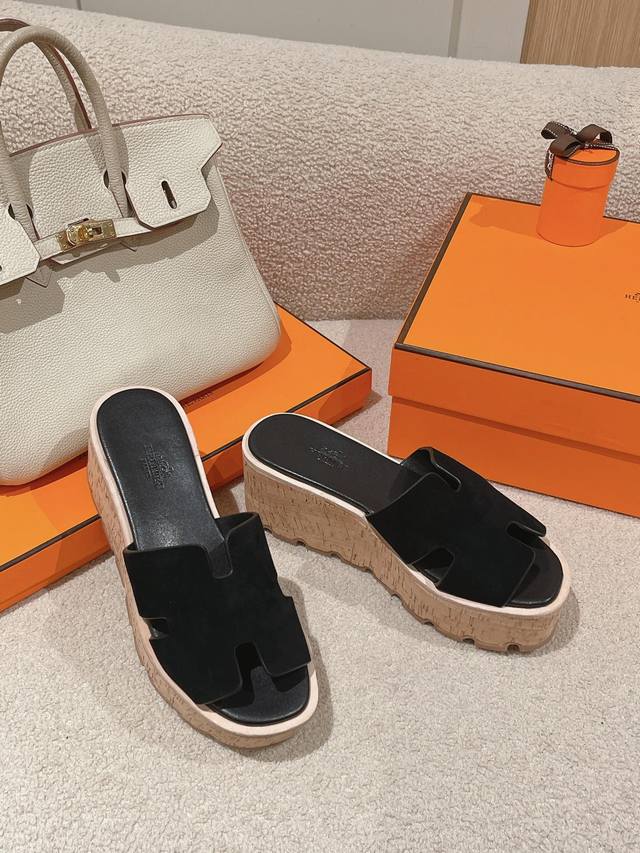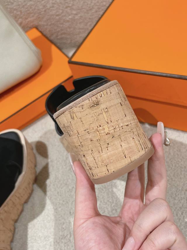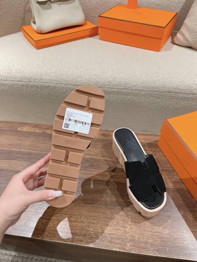 工厂价 小牛皮凉鞋,“H”型鞋面。 轻盈木质厚鞋底打造大胆舒适造型,可谓夏日良伴。 码数35-40 40订制不退换 鞋跟高度:7厘米 前端鞋底和鞋跟的高度差:3
