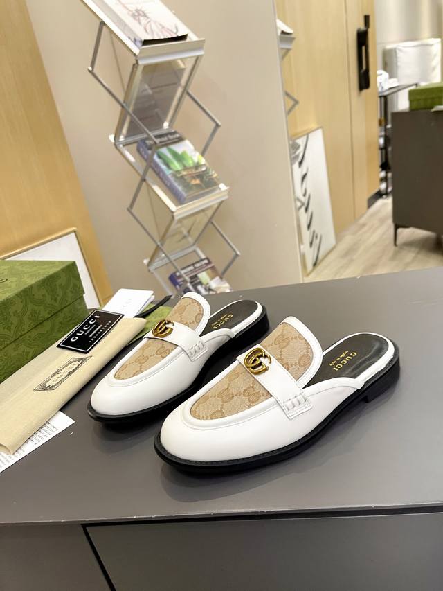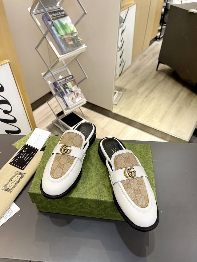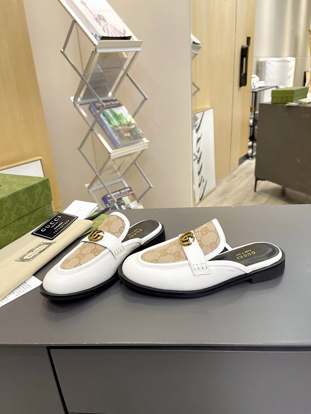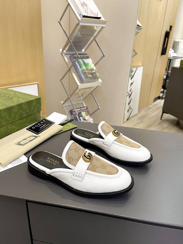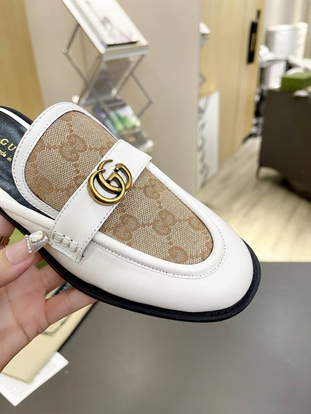 工厂价 新款g家经典设计乐福鞋,由v型绗缝效果皮革制作,由gucci演化而来的双g交织字母,面料小牛皮,内里垫脚混种羊皮,跟高1.5厘米,原版开模耐磨tpu大底