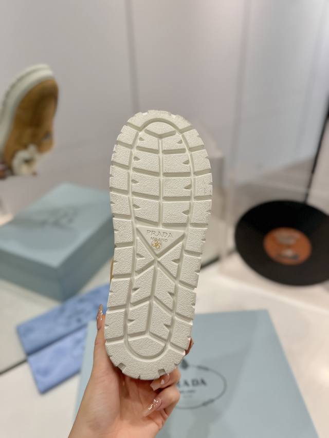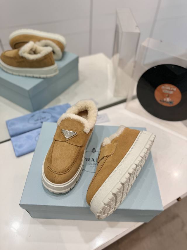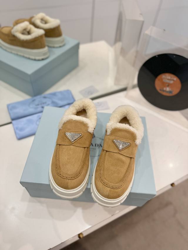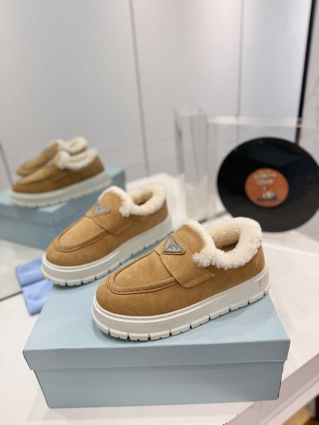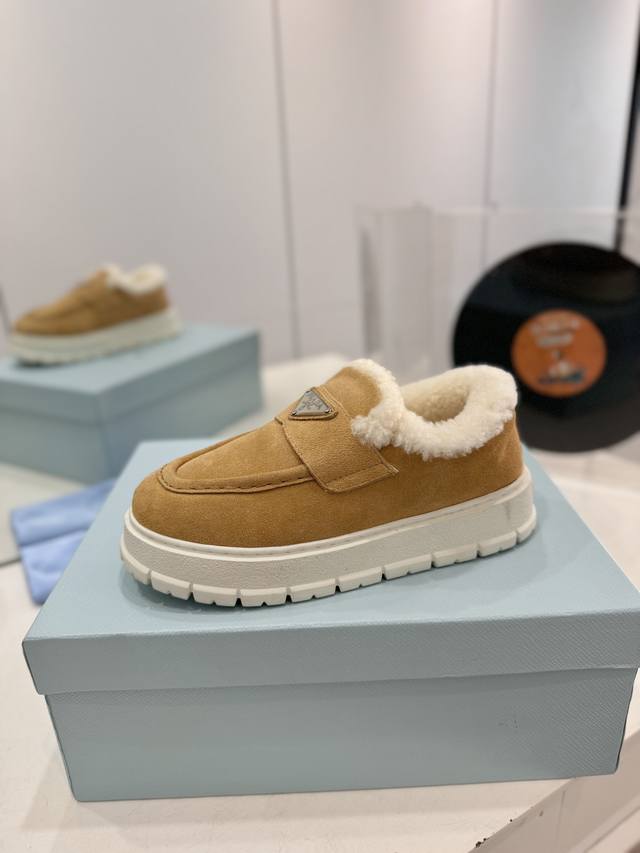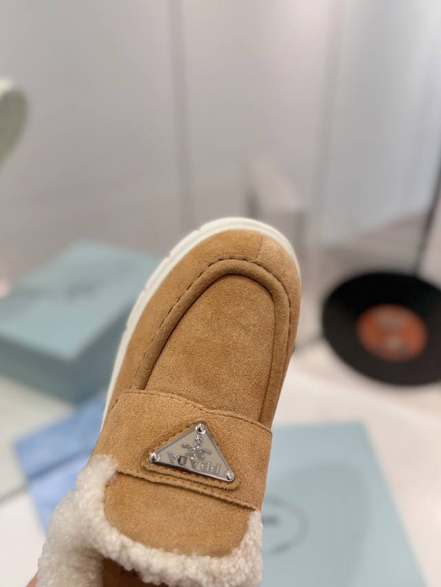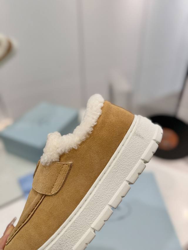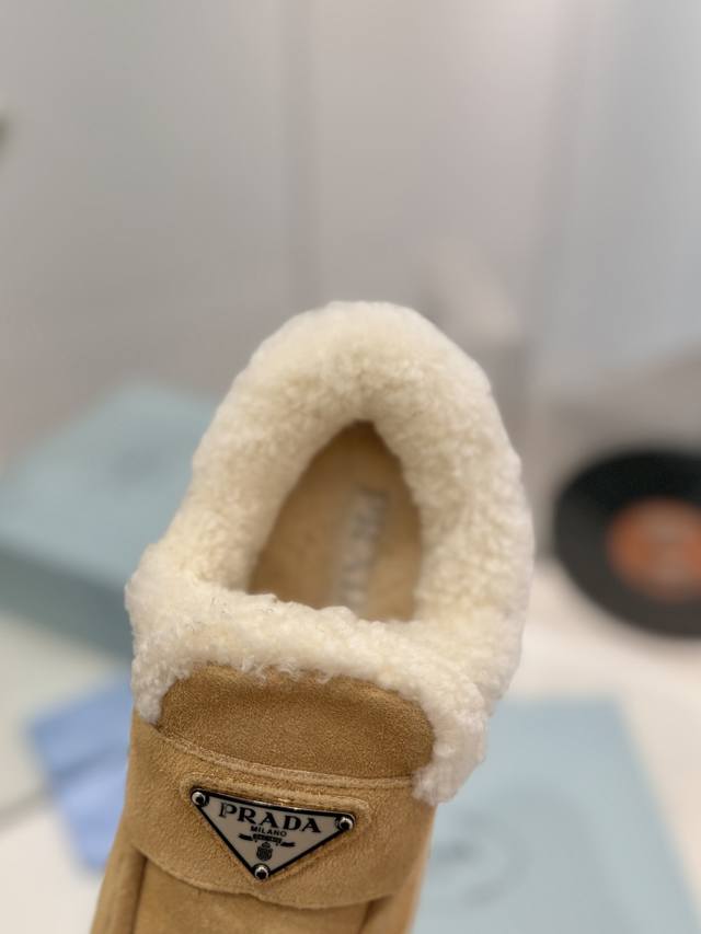 鞋面配羊皮毛鞋舌.饰倒三角形徽标