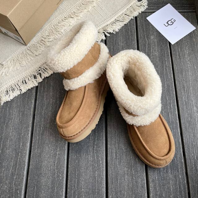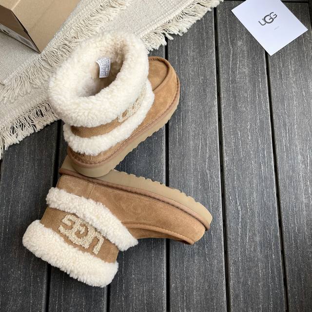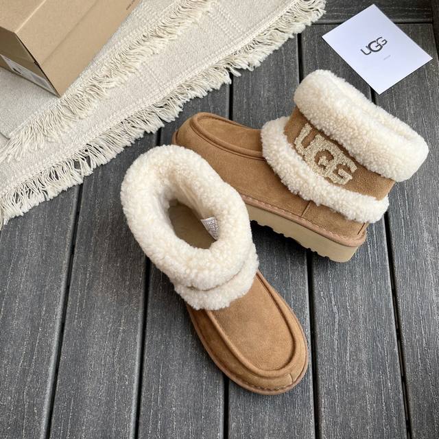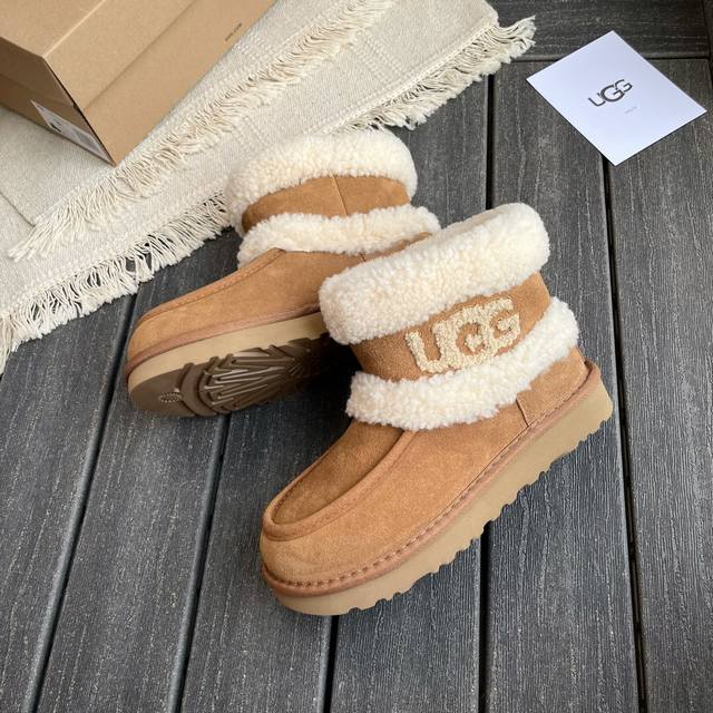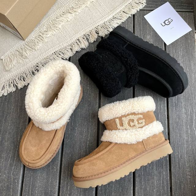 工厂价 Ugg 刺绣logo翻毛雪地靴火爆来袭 牛皮搭配皮毛一体设计 秋冬穿搭必备单品 材质牛皮,内里真羊毛 码数:35-40