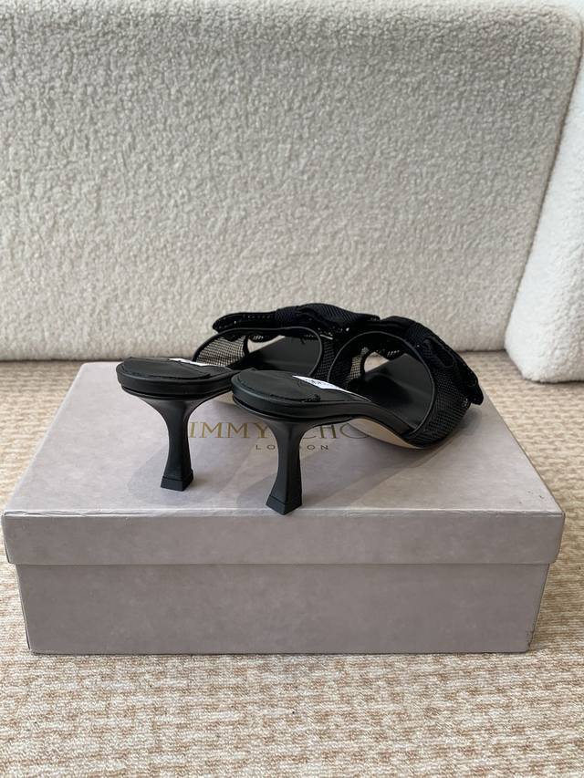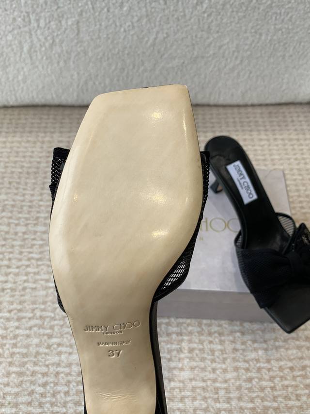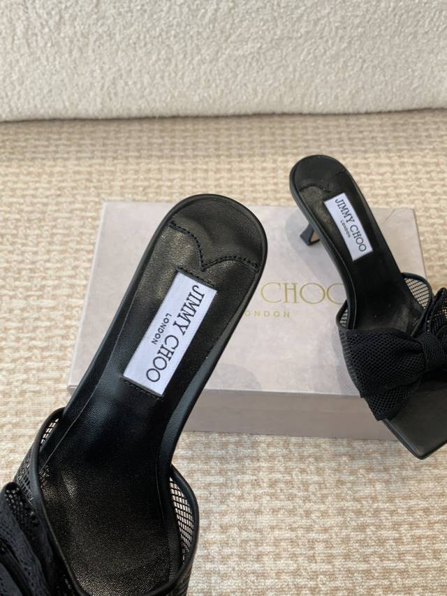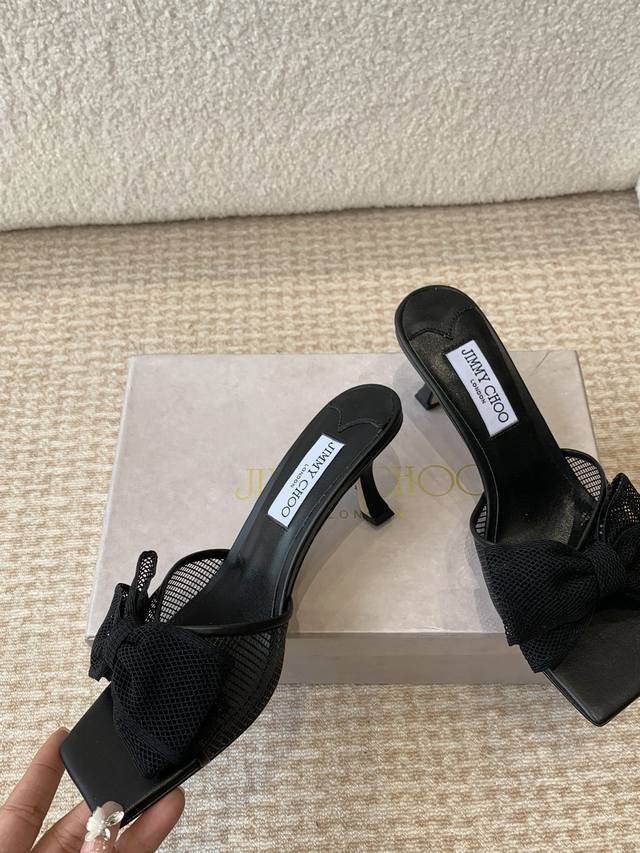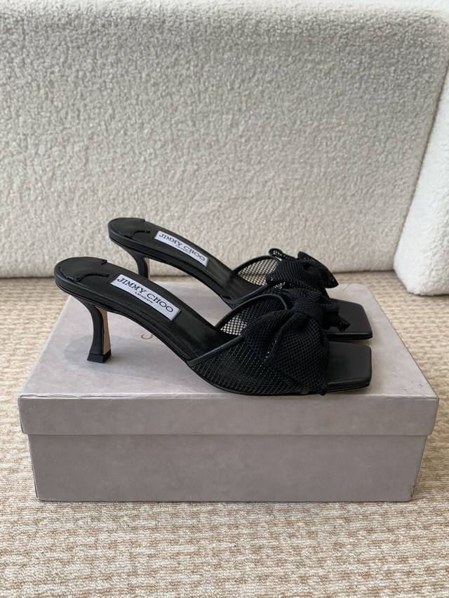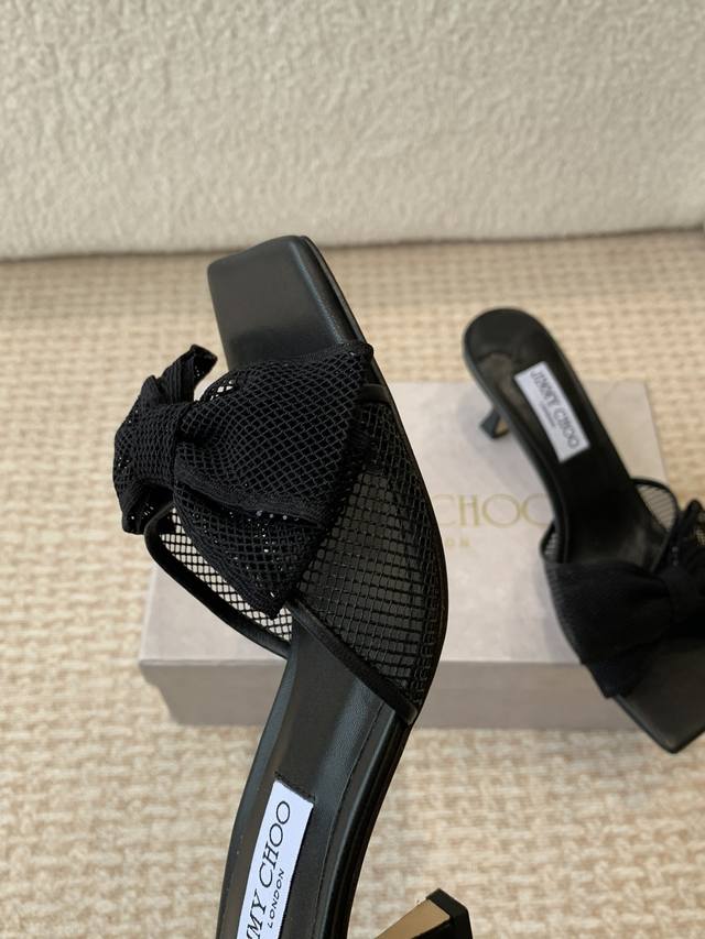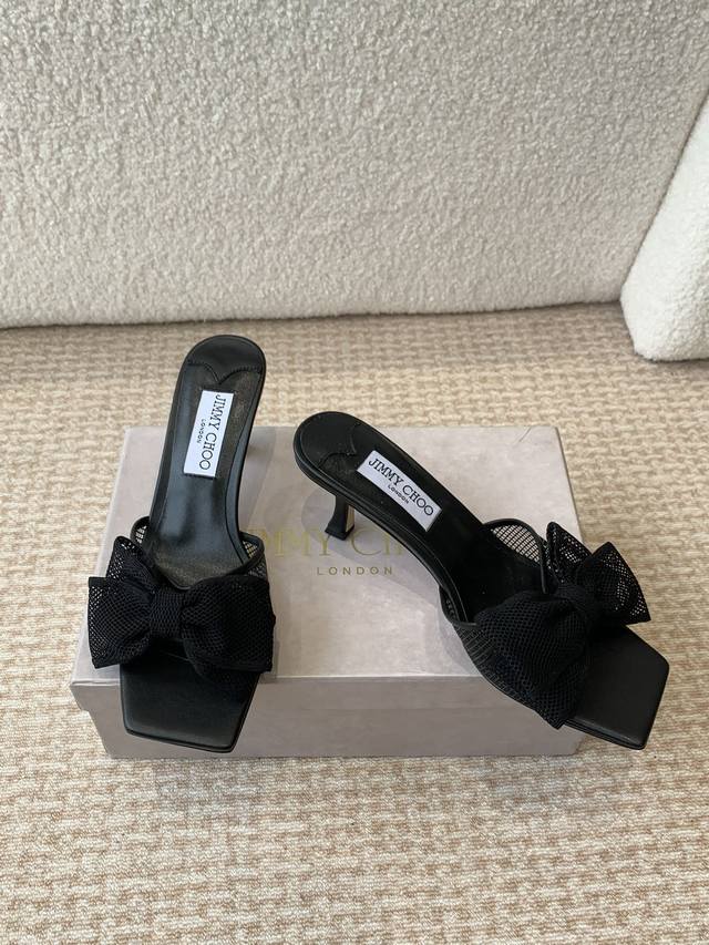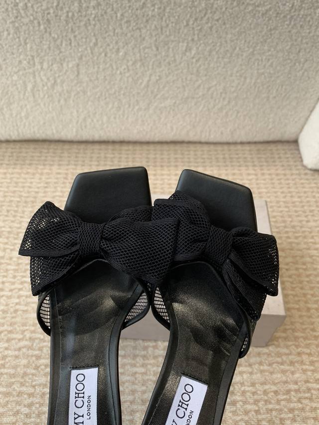 Jimmychoo吉米周2024Ss,专柜限量款方头细跟 蝴蝶结 拖鞋 简约大气,后带工形 给人清爽大气的感觉!