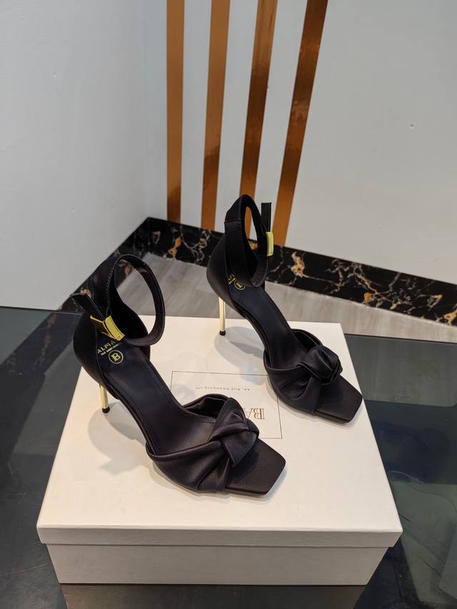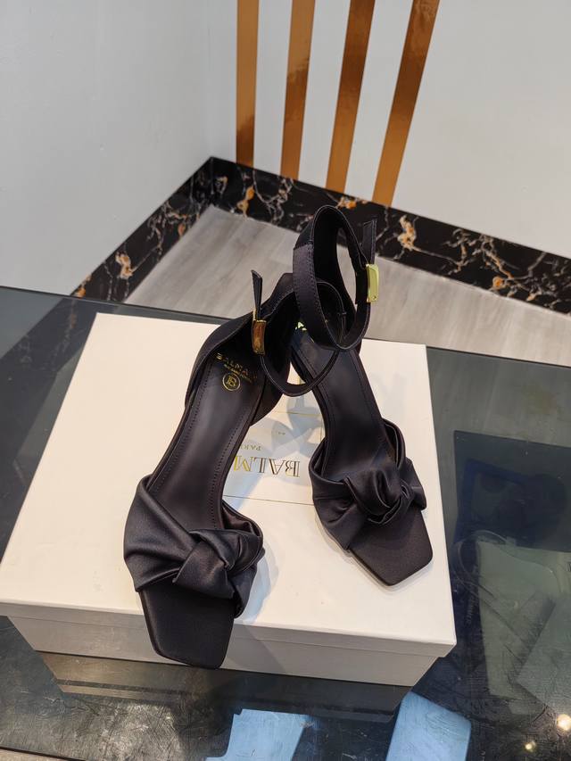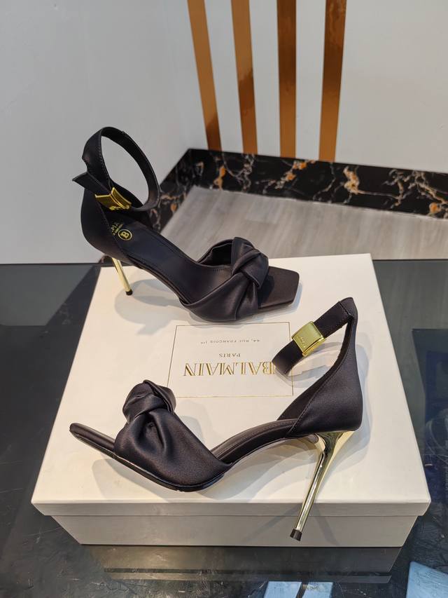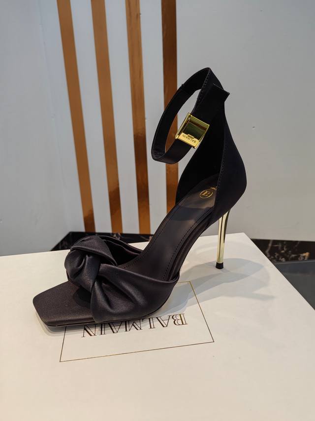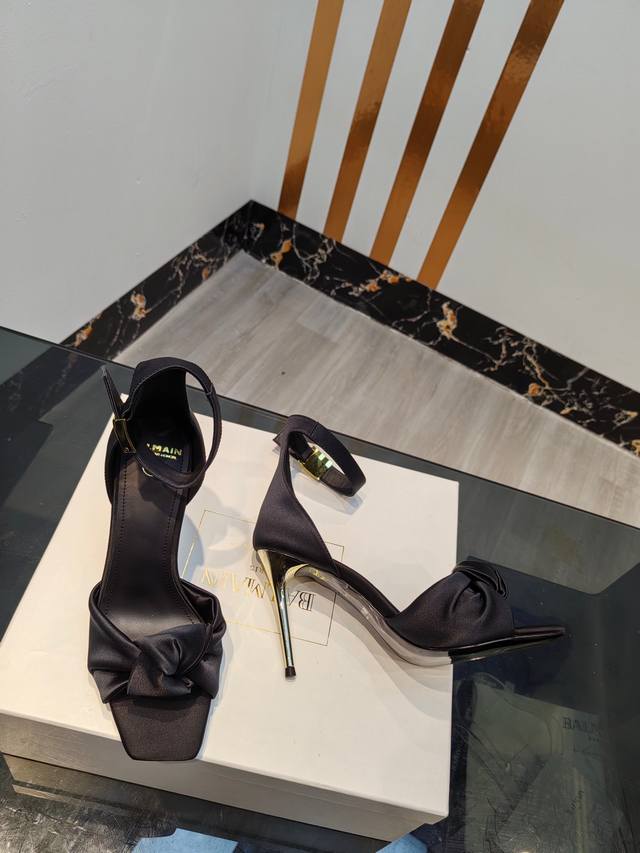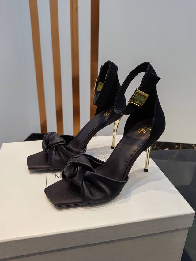 工厂出400,* 巴尔曼2025春夏最新款走秀原版真丝高跟拖鞋。