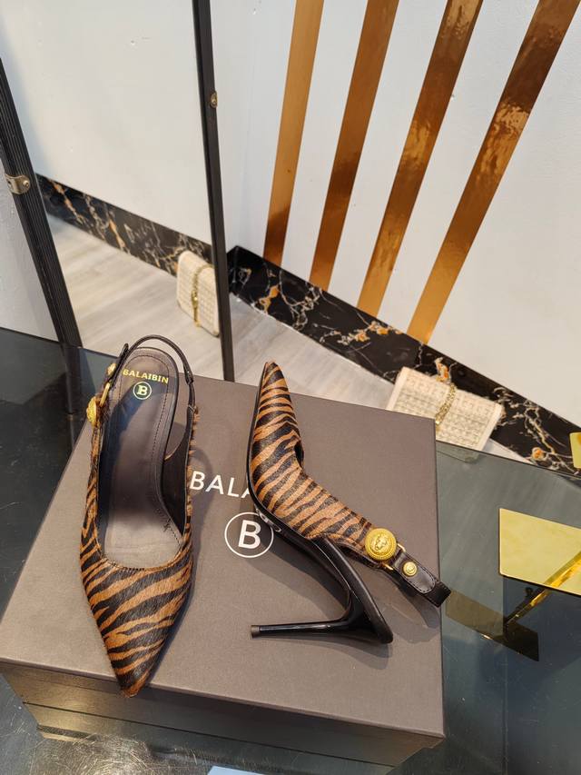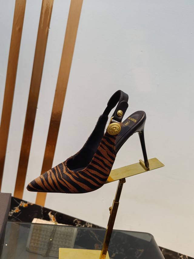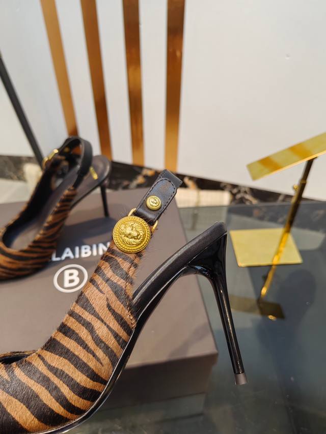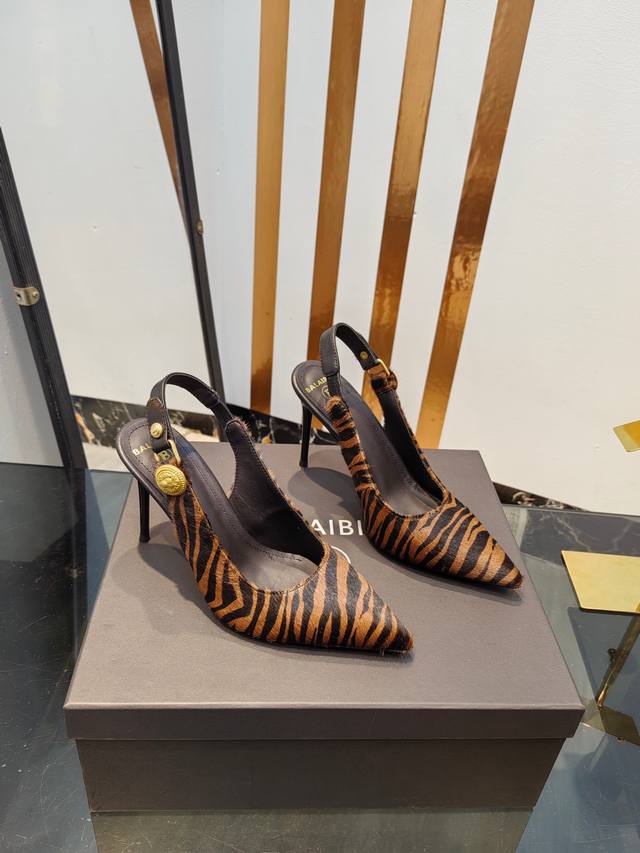 / 工厂出400【Bal*Bin】2025新款尖头高跟后空凉鞋,采用进口斑马毛皮,上脚无敌好看,线条优美,跟高适宜,9.5Cm,超显气质,进口牛皮内里,柔软舒适,码