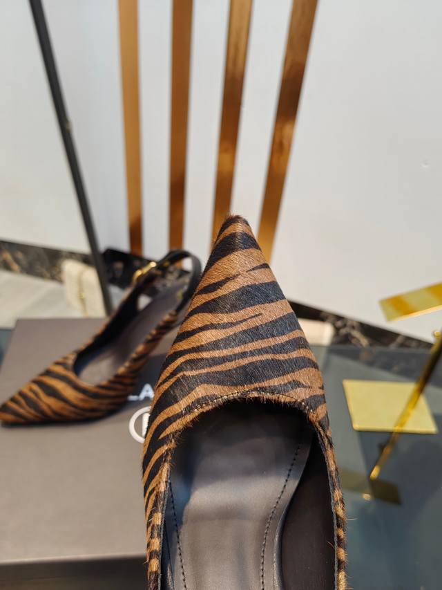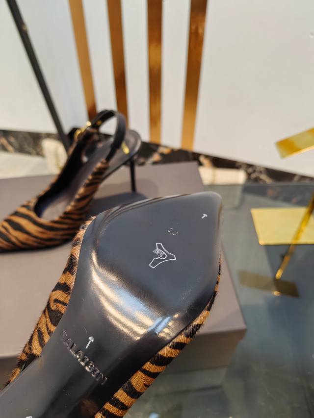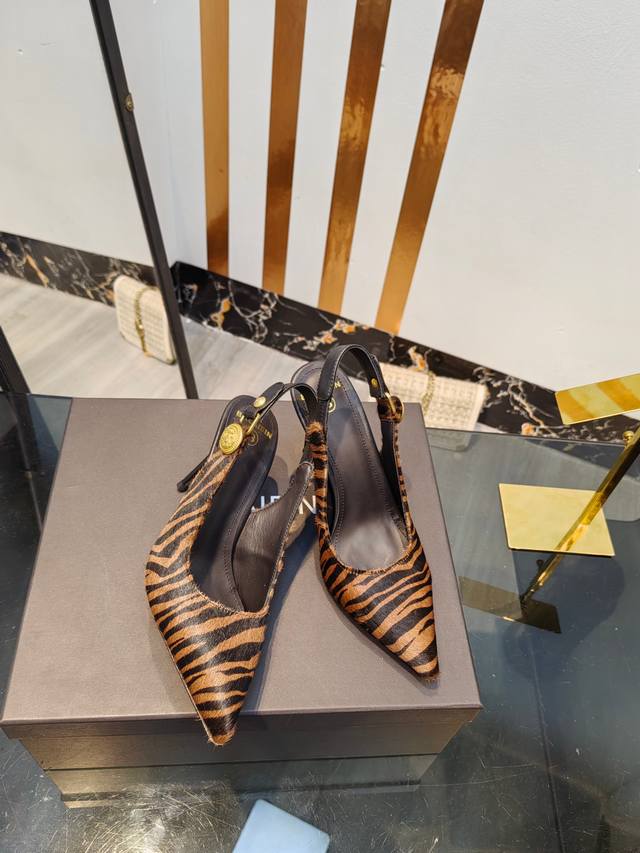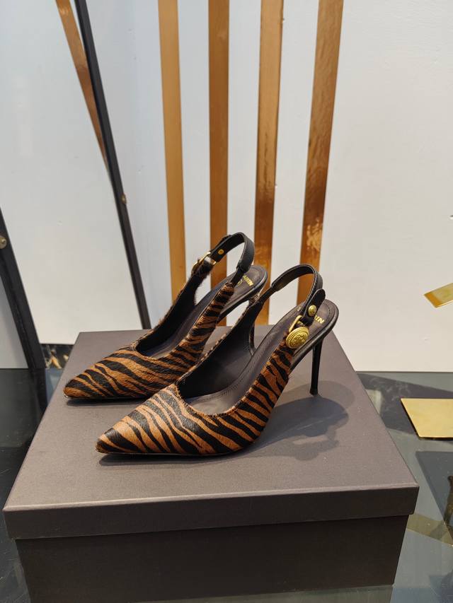 工厂出400【Bal*Bin】2025新款尖头高跟后空凉鞋,采用进口斑马毛皮,上脚无敌好看,线条优美,跟高适宜,9.5Cm,超显气质,进口牛皮内里,柔软舒适,码