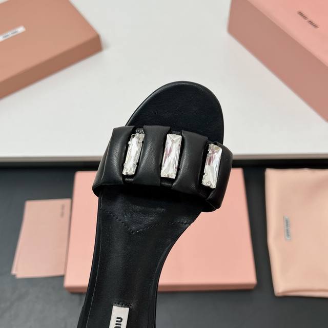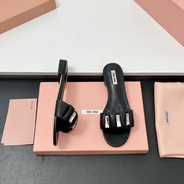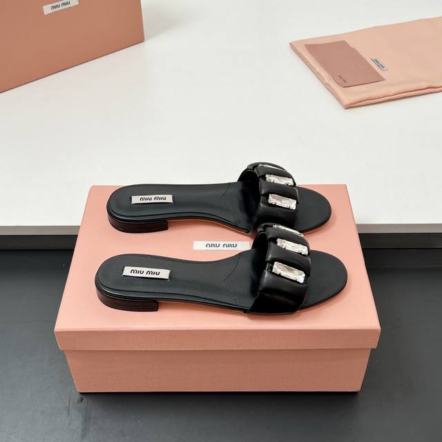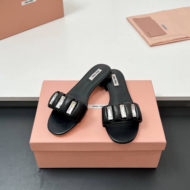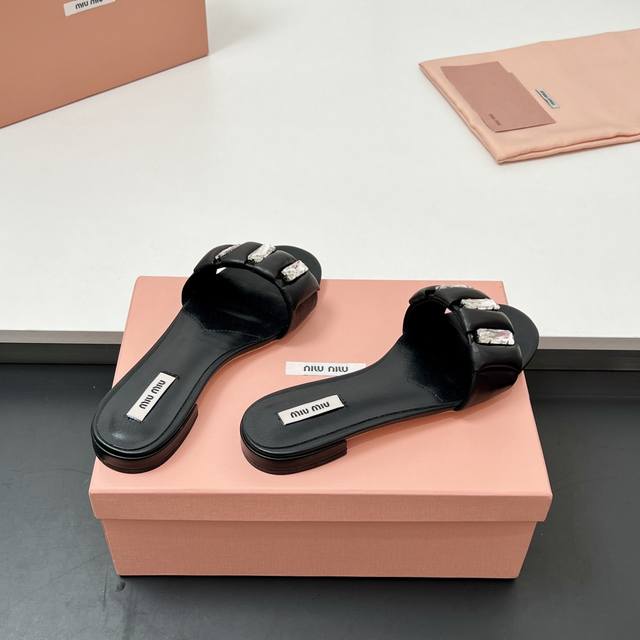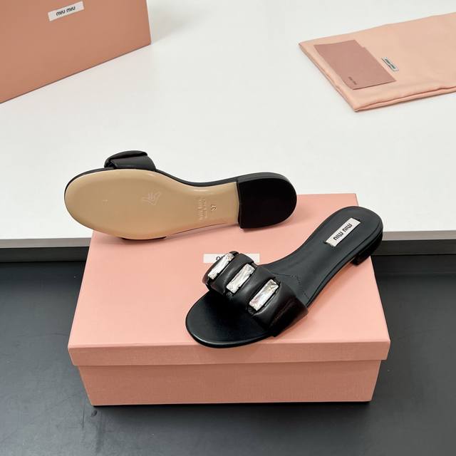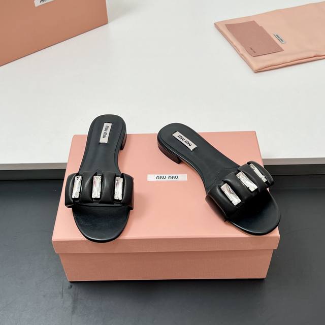 正确高版本! Miumiu:2025春夏新款镶钻一字拖鞋