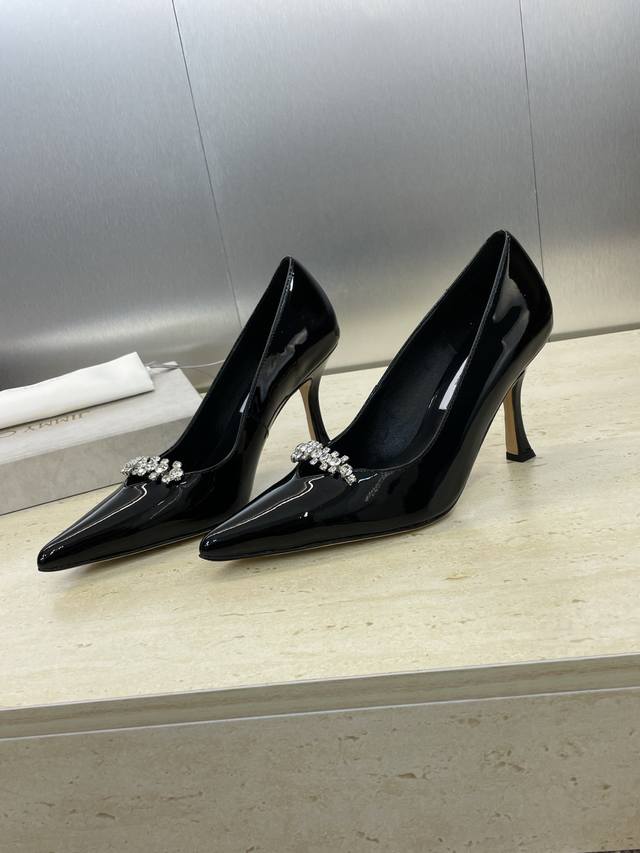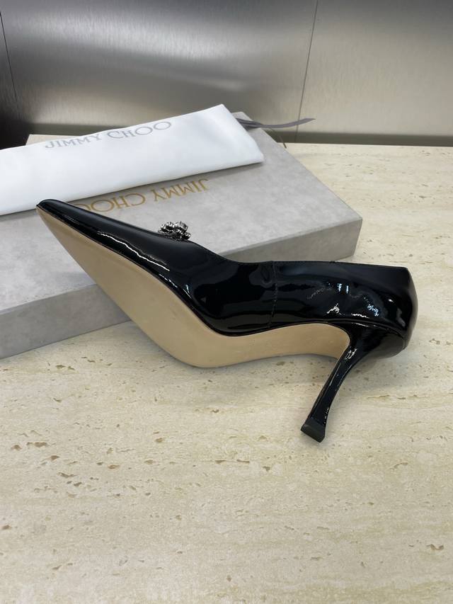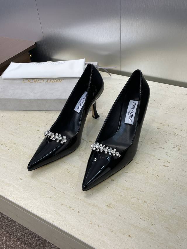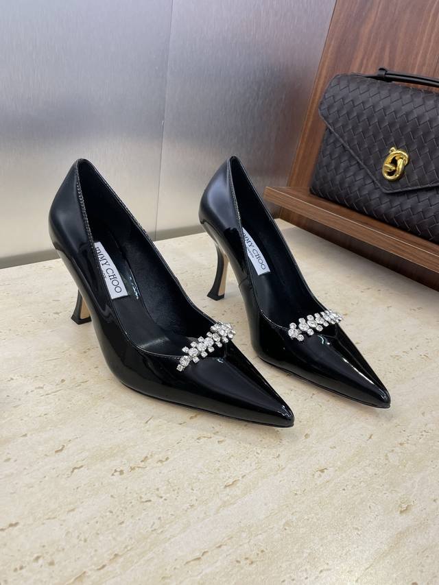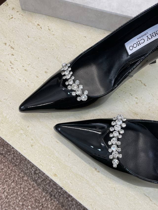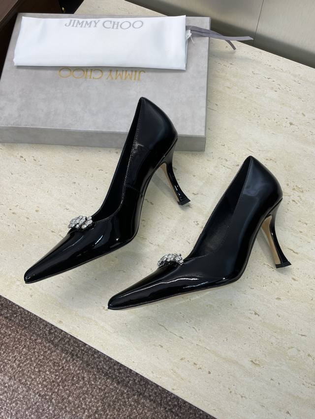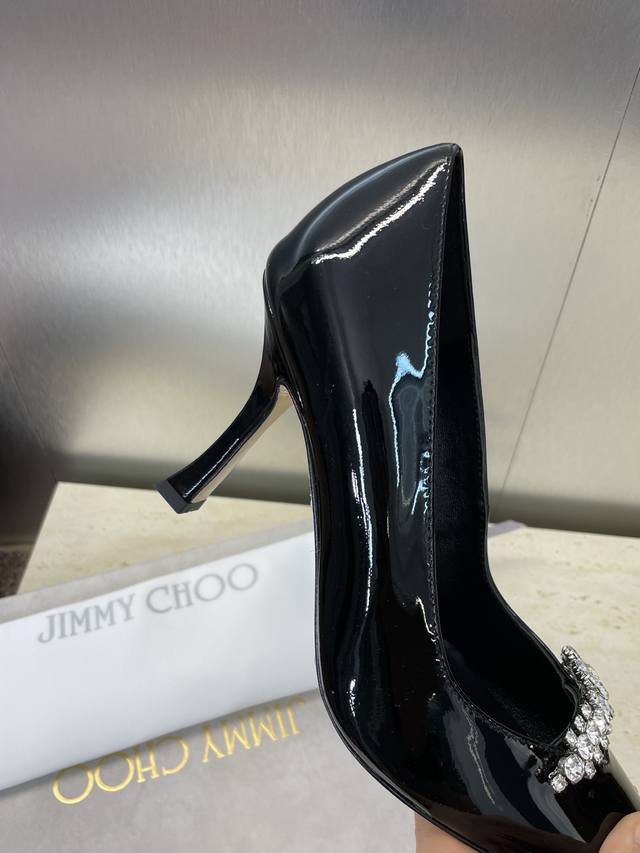 工厂p价p 周仰杰 Jimmy Choo 吉米周2025春夏新款高跟尖头水钻女婚鞋 Jc字母Logo五金扣拼色单鞋 材质:鞋面进口牛漆皮+水染羊皮内里+意大利进
