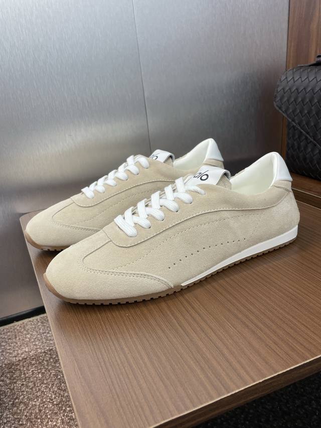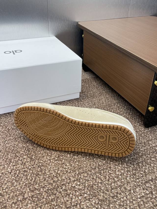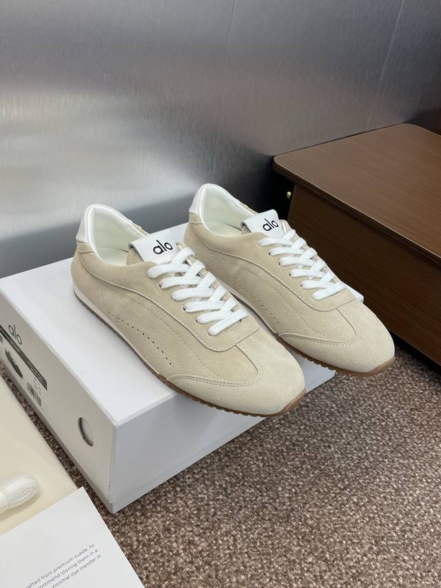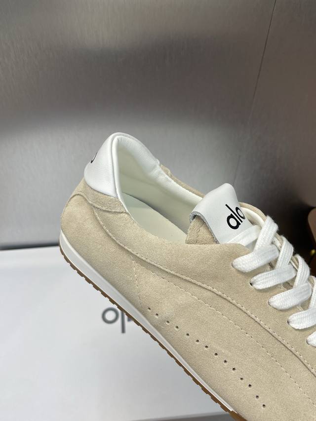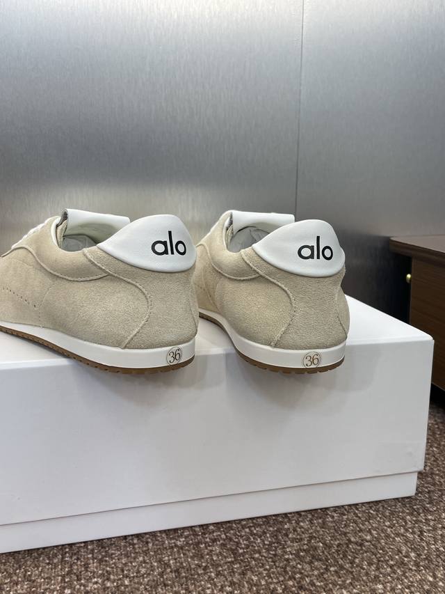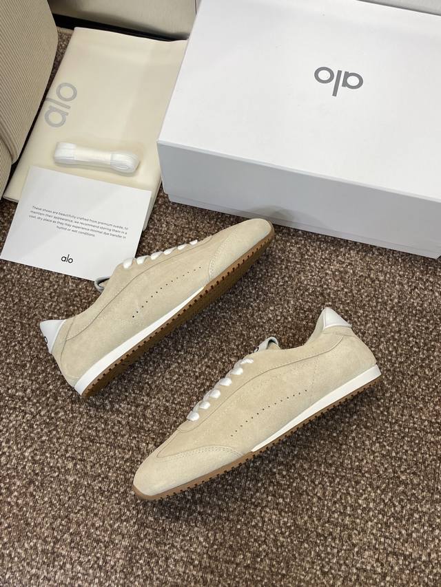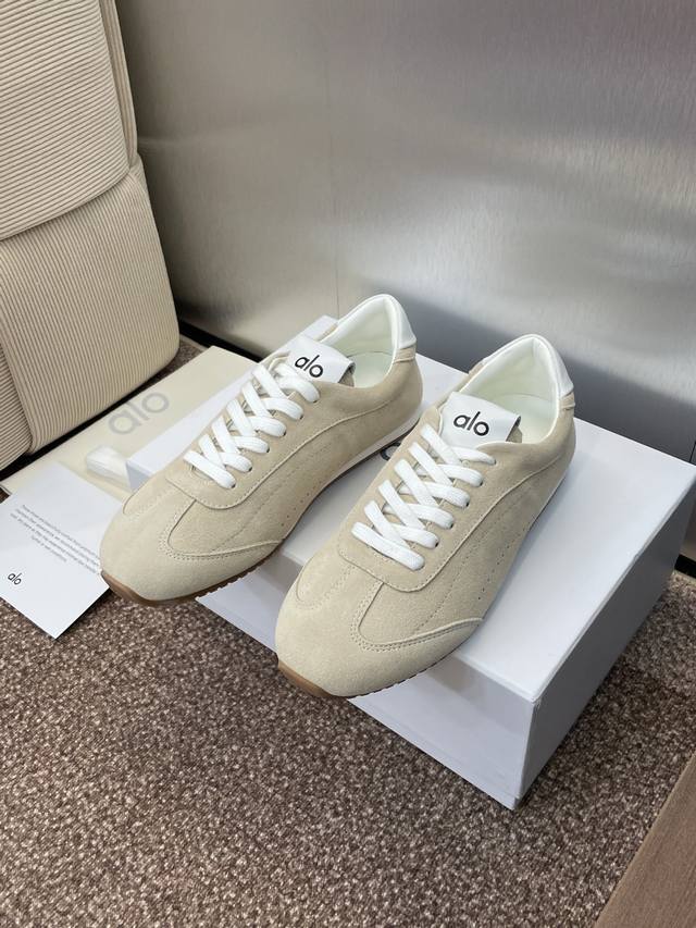 Alo 2025秋冬高定系列走秀情侣新款系带徳训休闲运动鞋 明星同款字母Logo圆头拼色阿甘跑鞋
