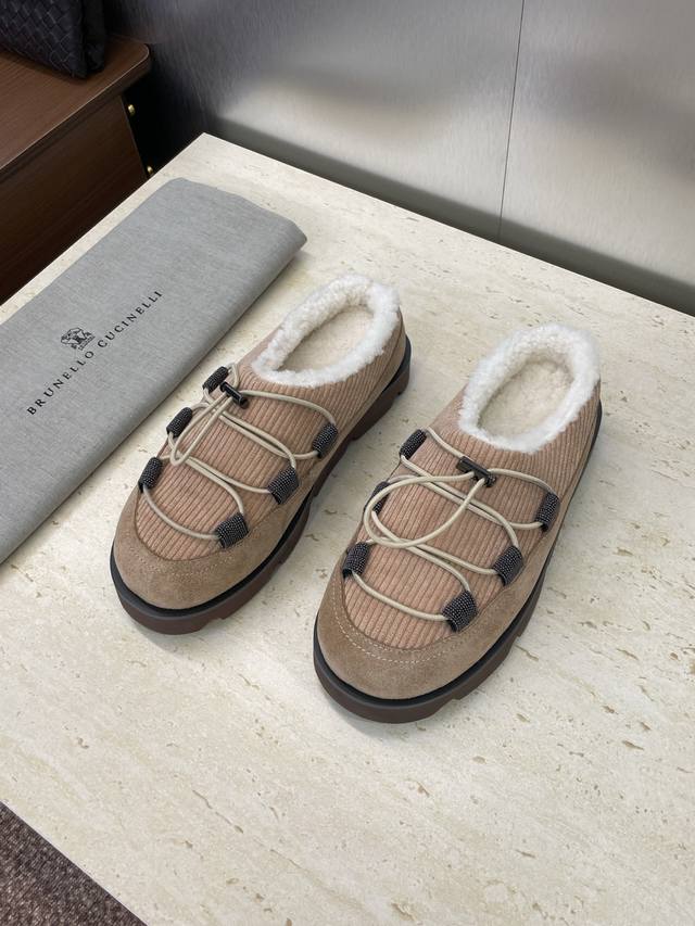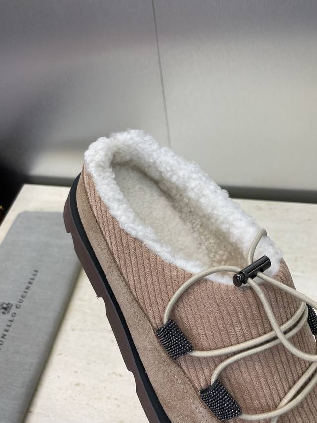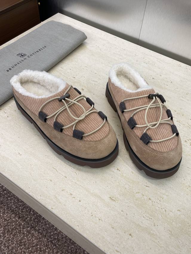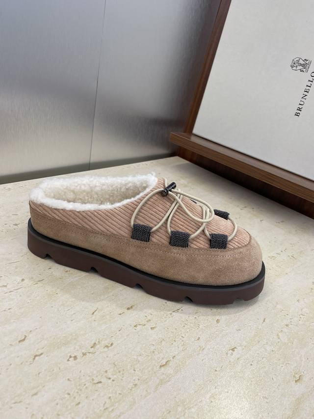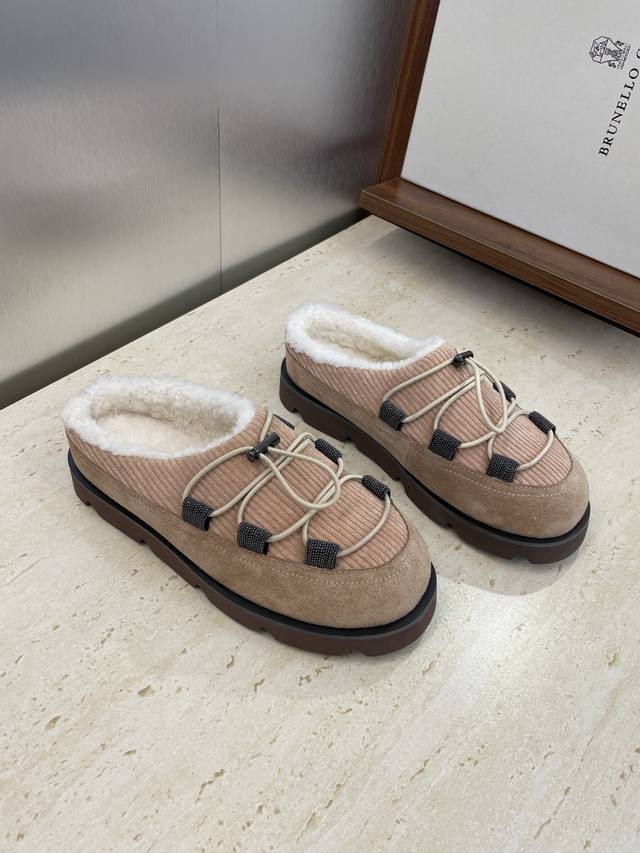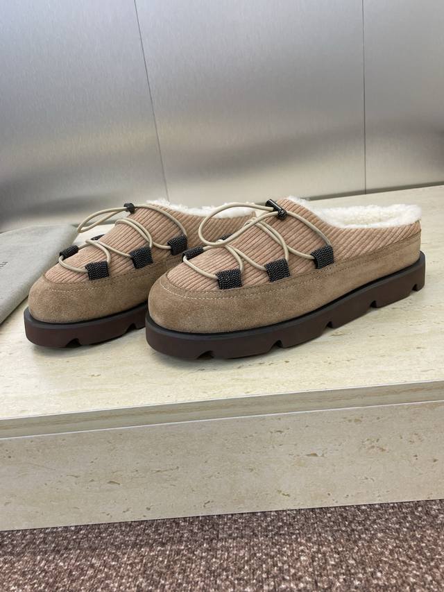 Brunello Cucineli 布鲁内诺库奇内利 2025秋冬新款字母Logo穆勒女鞋 Bc明星同款厚底系带圆头拼色串珠头居家毛毛拖鞋 市场顶级版本