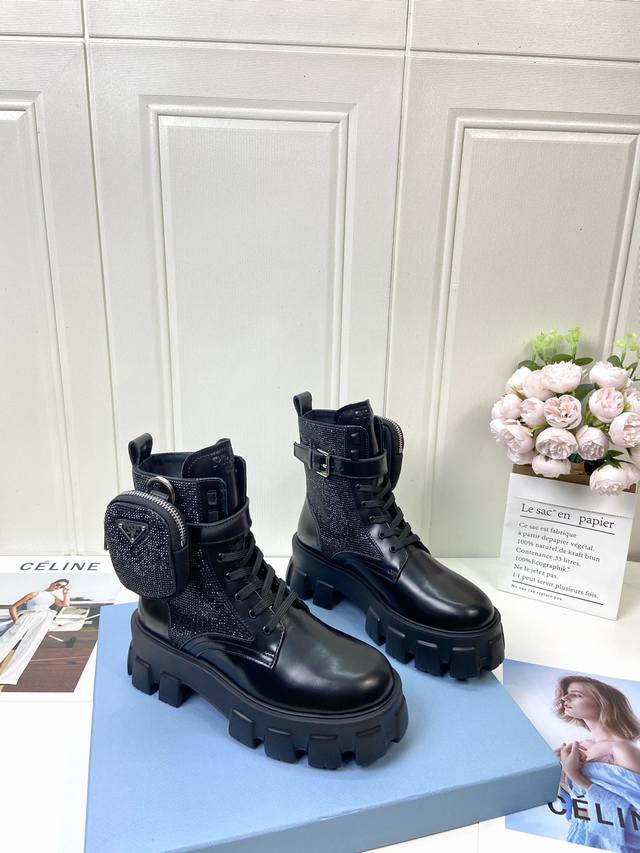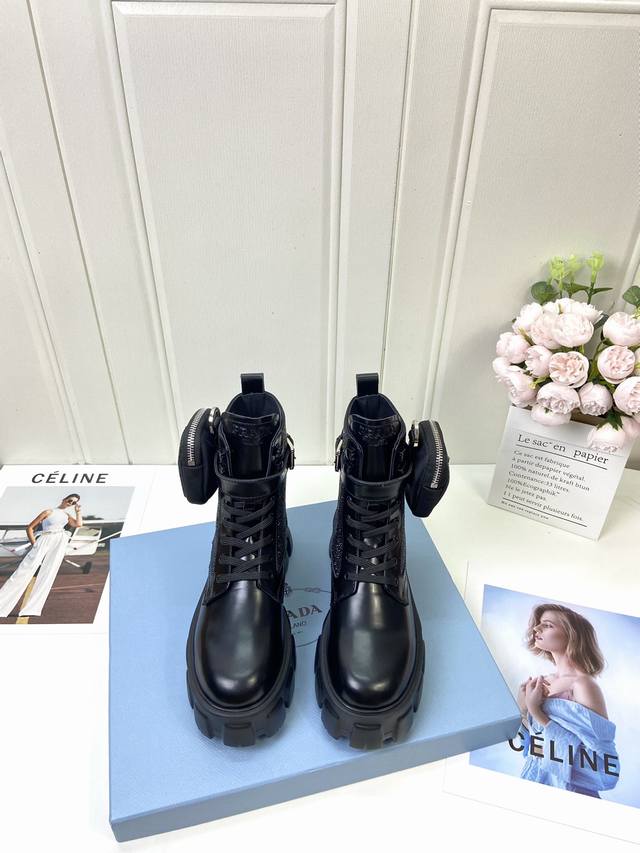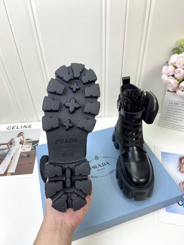 / 工厂p批 代购级 prad 家经典靴型+英伦拼色设计,经典耐看!原版倒模楦型,极致1:1形体,进口高端织针呈现出精致质感! 开模定制A级大底,奢华包装! -无二