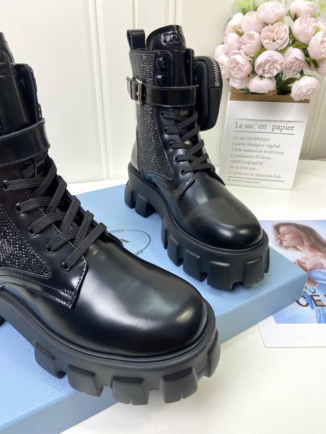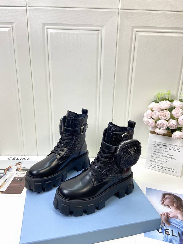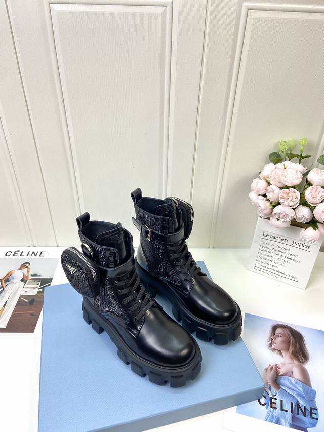 工厂p批 代购级 prad 家经典靴型+英伦拼色设计,经典耐看!原版倒模楦型,极致1:1形体,进口高端织针呈现出精致质感! 开模定制A级大底,奢华包装! -无二