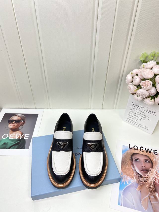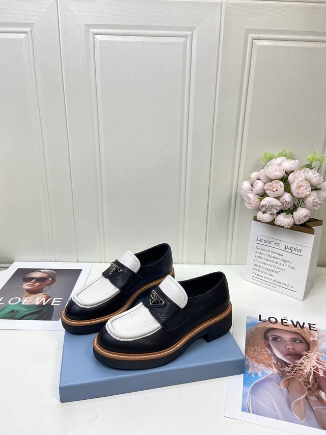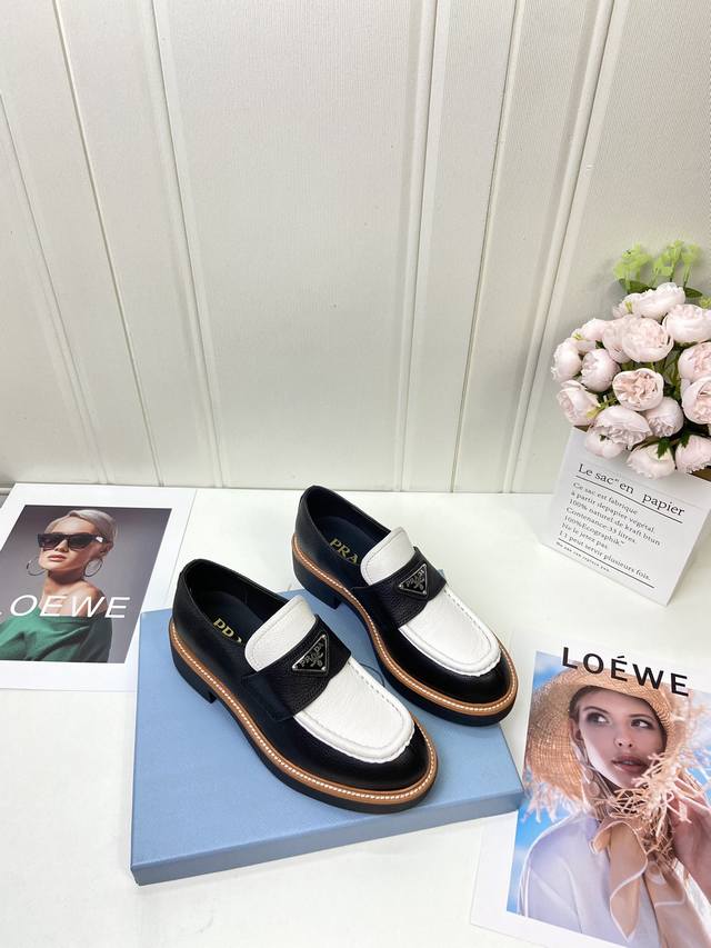 工厂p批 prad 24S官网新款乐福鞋,楦靴型+英伦复古设计,经典耐看!原版倒模楦型,极致1:1形体,进口高端面料呈现出精致质感!