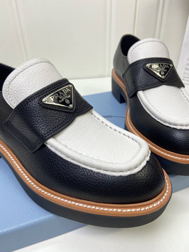 工厂p批 prad 24S官网新款乐福鞋,楦靴型+英伦复古设计,经典耐看!原版倒模楦型,极致1:1形体,进口高端面料呈现出精致质感! 鞋面采用原版进口荔枝纹牛皮