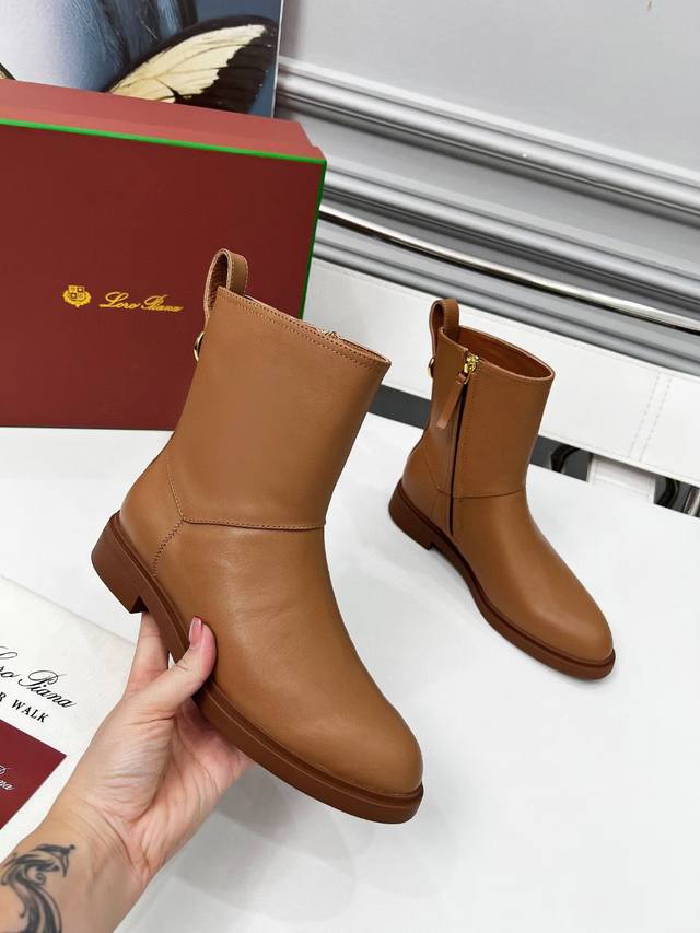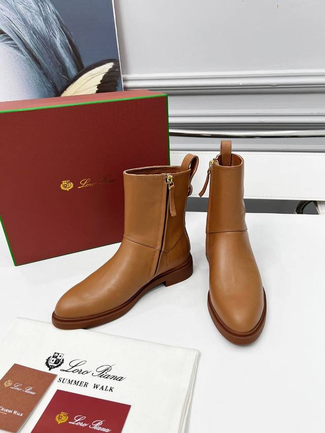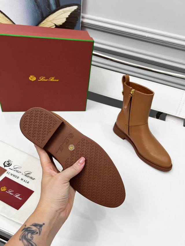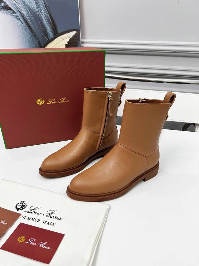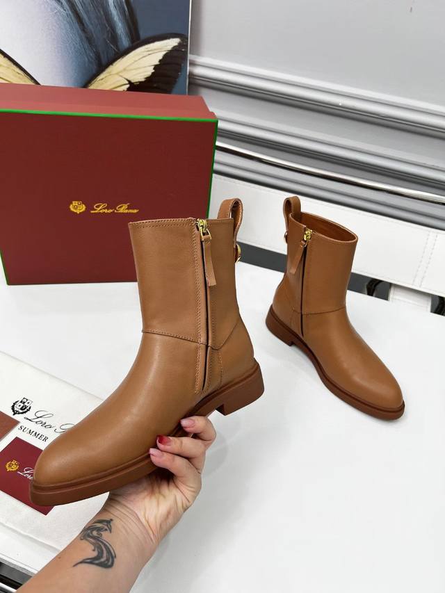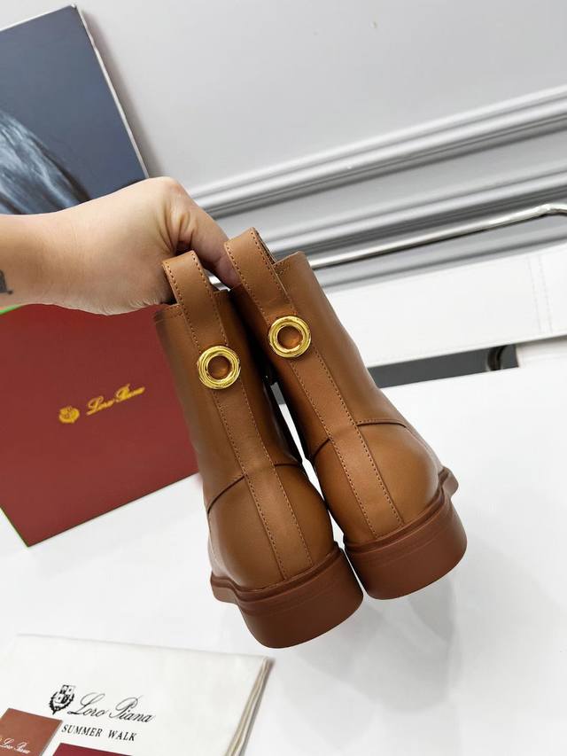 工厂p直销头层牛皮420G02代购级别所见即所得Loro piana 诺悠翩雅 L S秋冬新款 Kilda踝靴侧拉链短靴