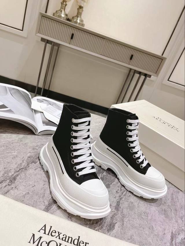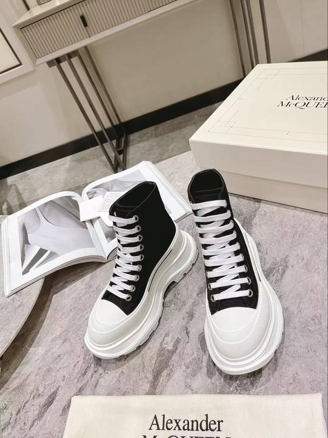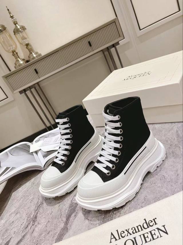 / 工厂p直销 Mc Queen 麦昆新款情侣鞋! Ss春款首发 鞋面采用定制原版帆布。色泽温润。 内里垫脚采用牛皮 大底采用原版开模抽真空大底。几层大底组合工艺复