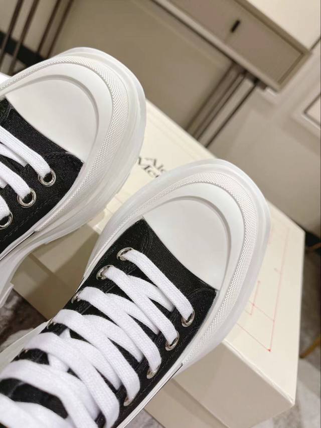 工厂p直销 Mc Queen 麦昆新款情侣鞋! Ss春款首发 鞋面采用定制原版帆布。色泽温润。 内里垫脚采用牛皮 大底采用原版开模抽真空大底。几层大底组合工艺复