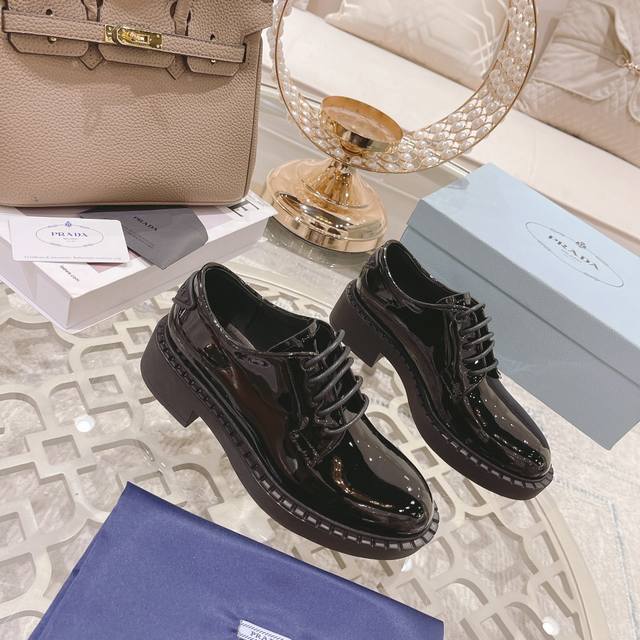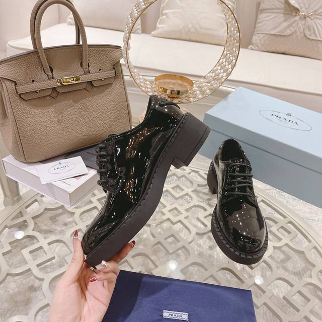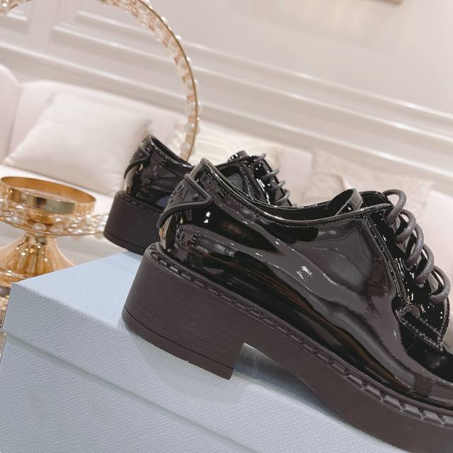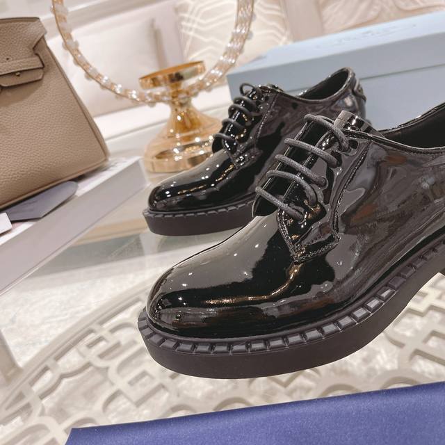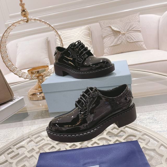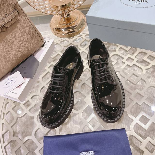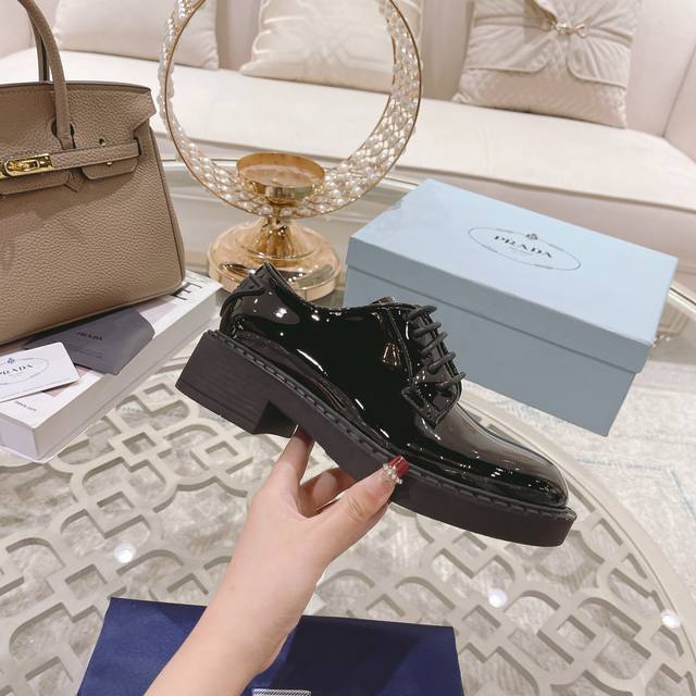 工厂p 、 普拉专柜&官网最新款,原版1:1滴胶三角Logo,面皮:牛开边珠 牛漆皮,里皮:水染牛皮里,35-39 40、41可定制,不能调换 ,