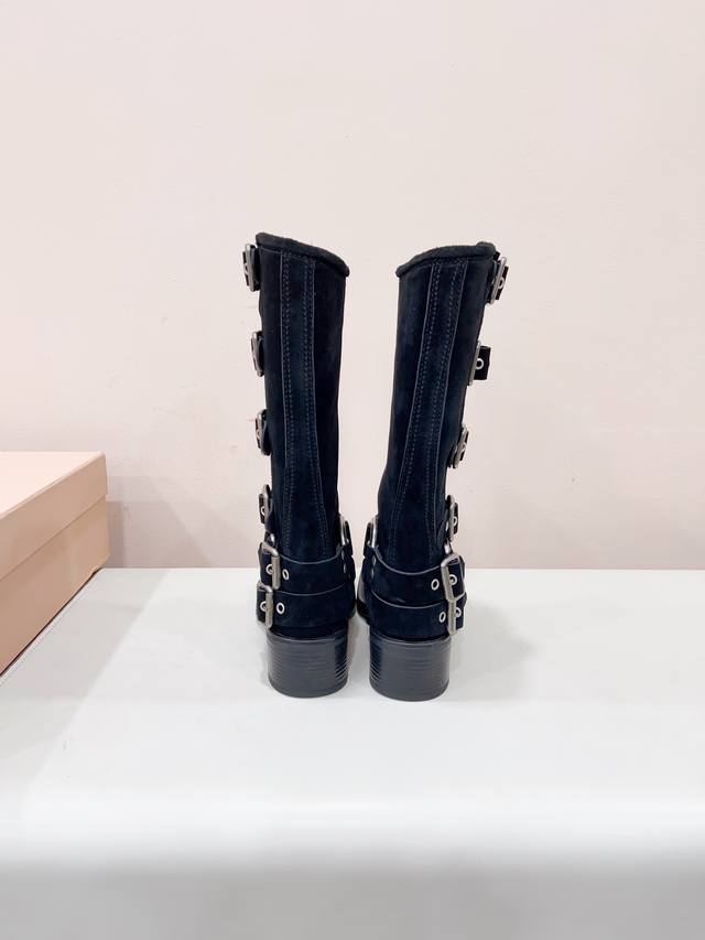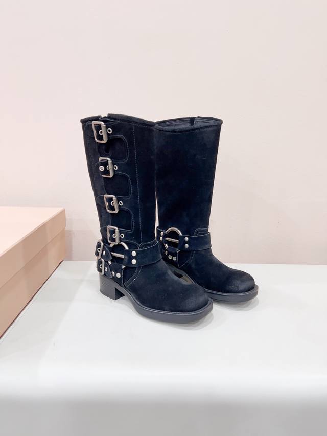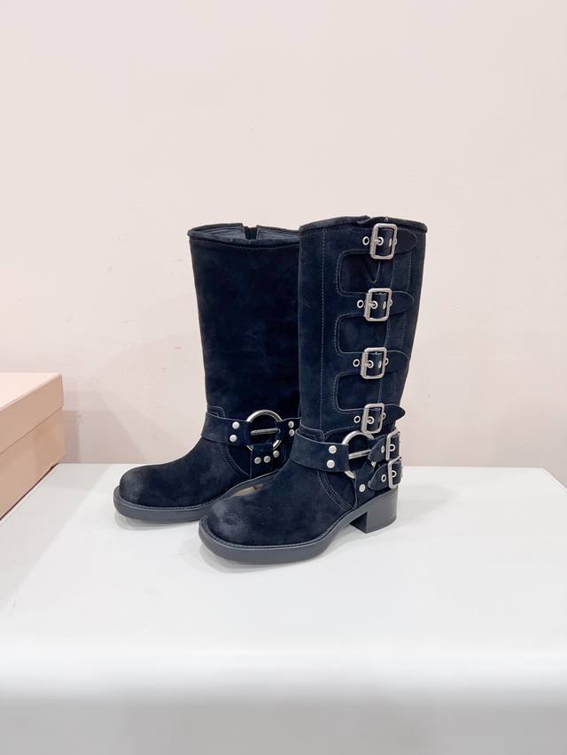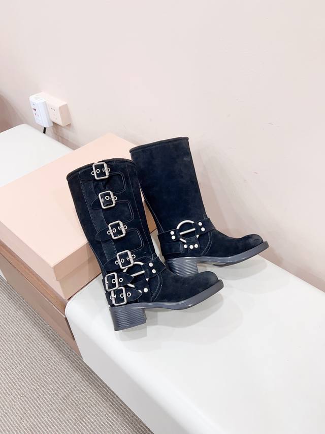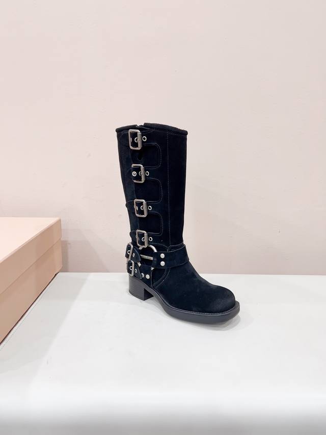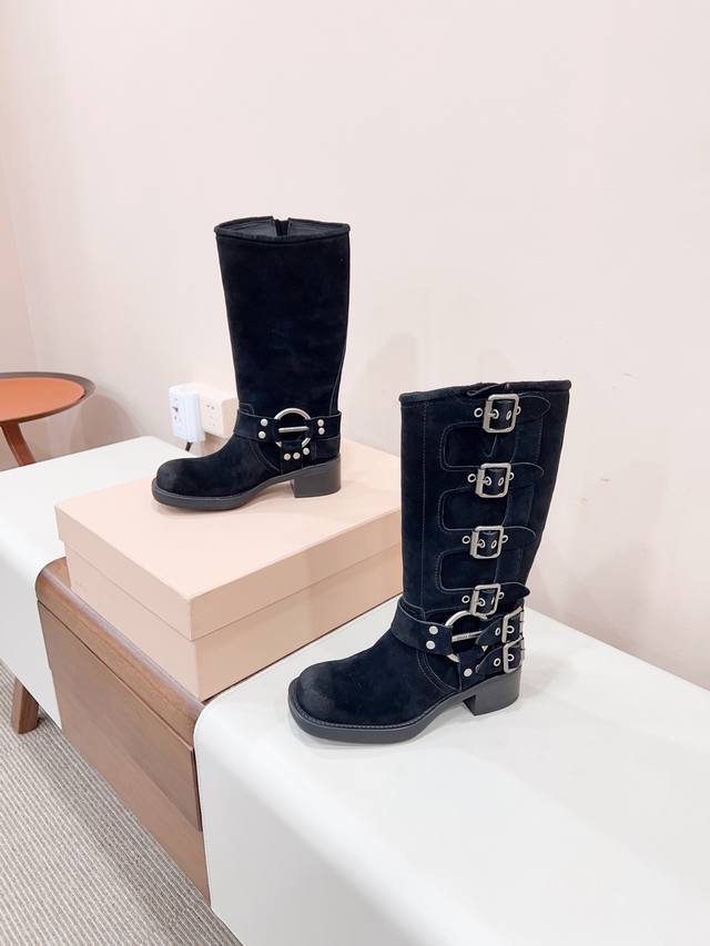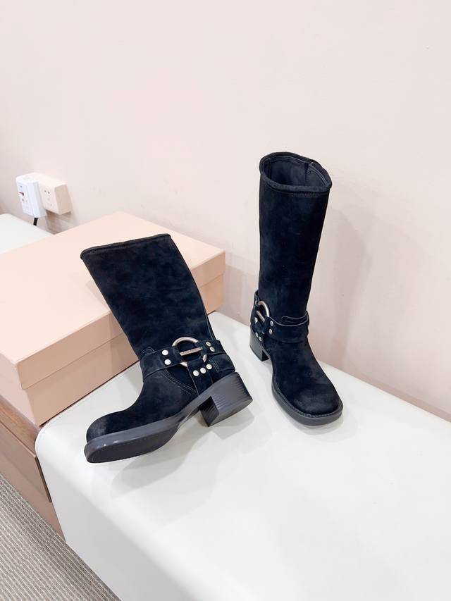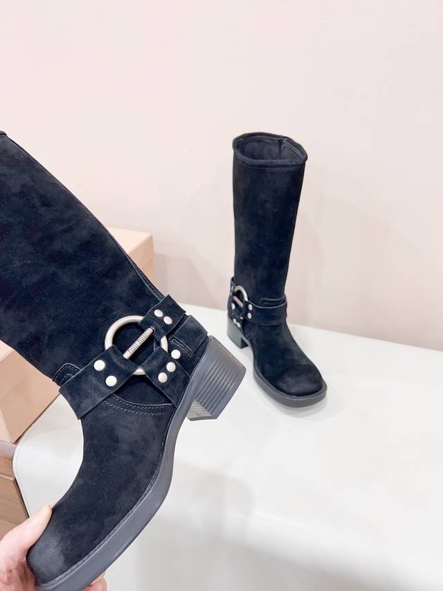 Miumi* Vs秋冬最新走秀爆款长靴系列 圆头满扣长筒靴