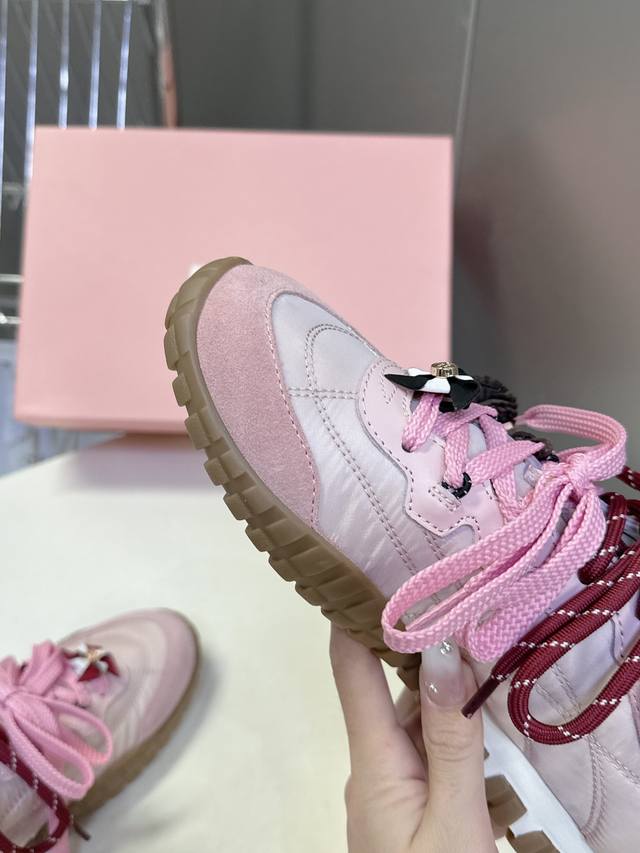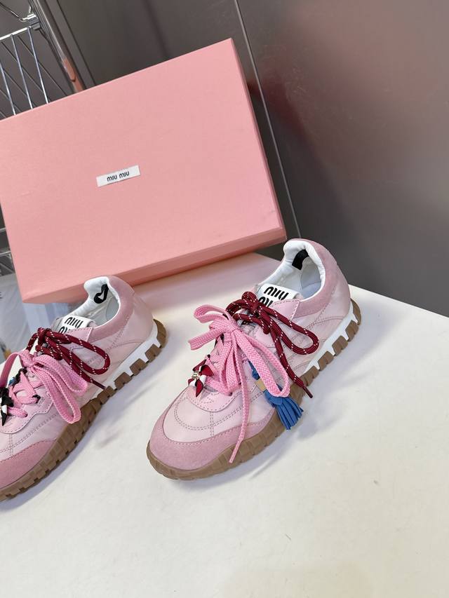 专柜Rmb11610购入开发 Miumiu最新爆款 前卫大胆的设计,Miu Miu风格融于此款厚底帆布运动鞋的简约线条,别致徽标饰于鞋舌与背面,点缀复古设计,平添标志性元素!厚底设计定义前卫的现代风格面料:原版定制布料 牛反绒 内里:原版进口柔软羊羔毛 鞋底:原版开模防滑橡胶大底 Size:35-40 40定制不退换