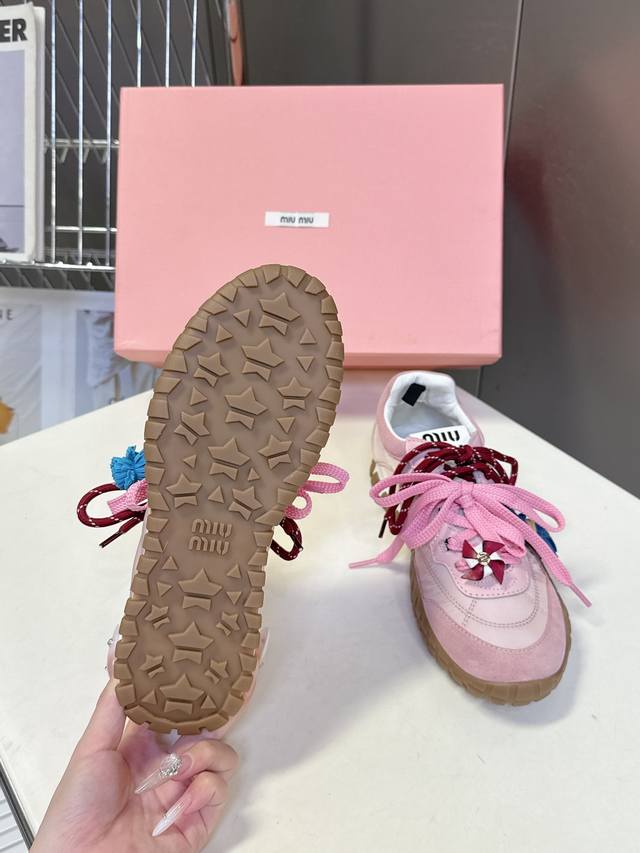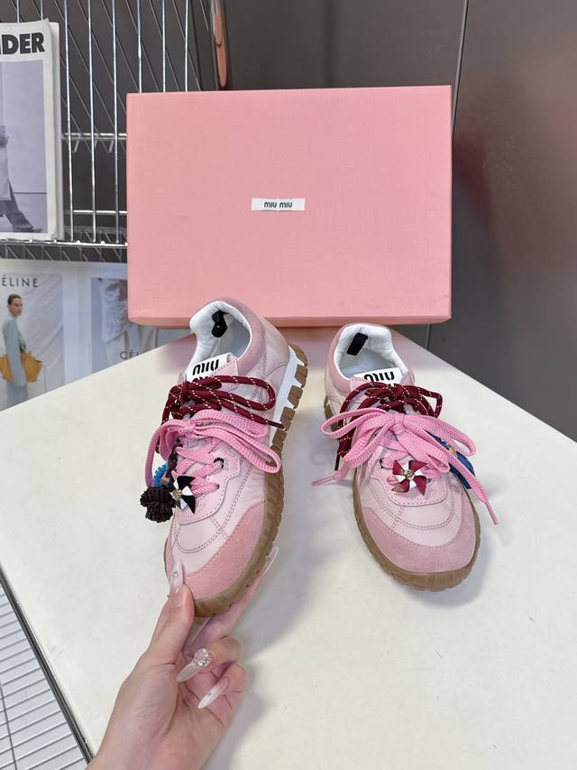 带配饰 Miumiu缪缪春夏秀款 饼干鞋 阿甘鞋休闲运动鞋