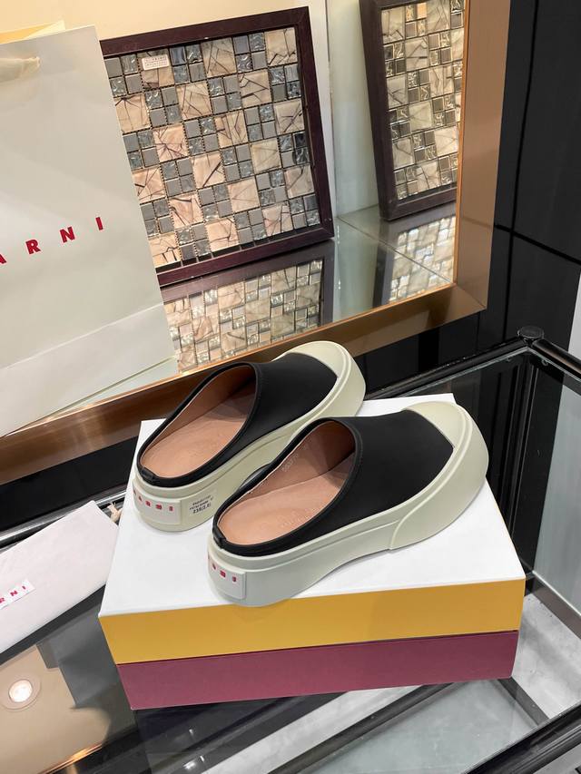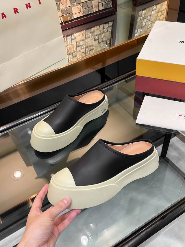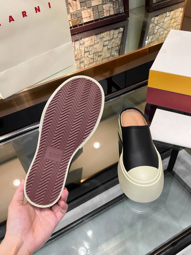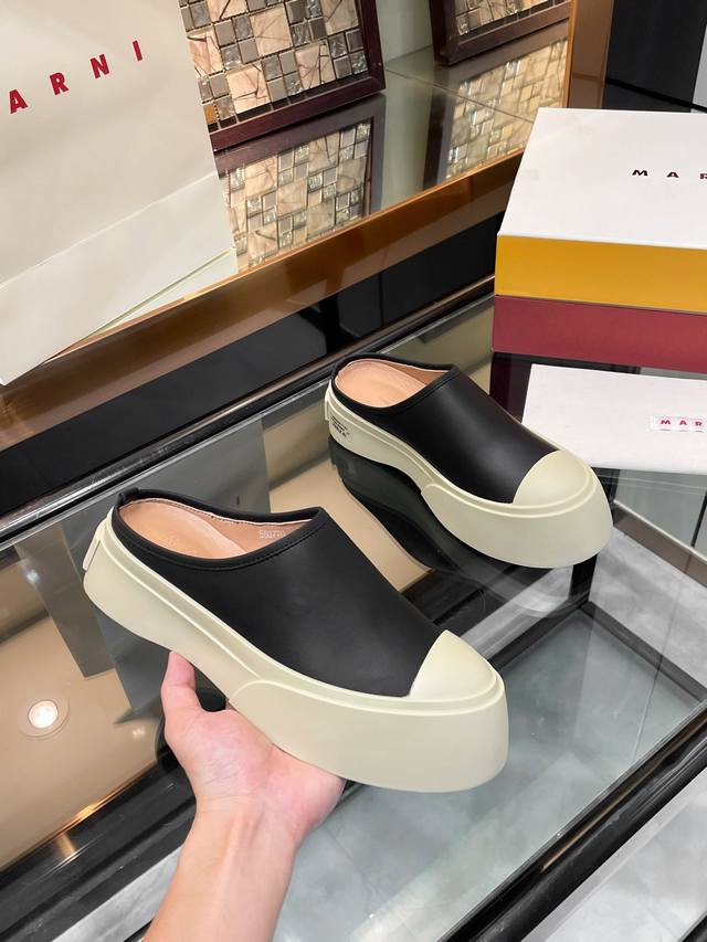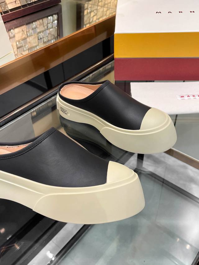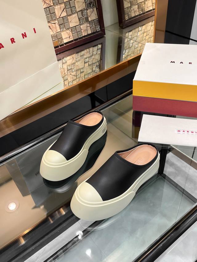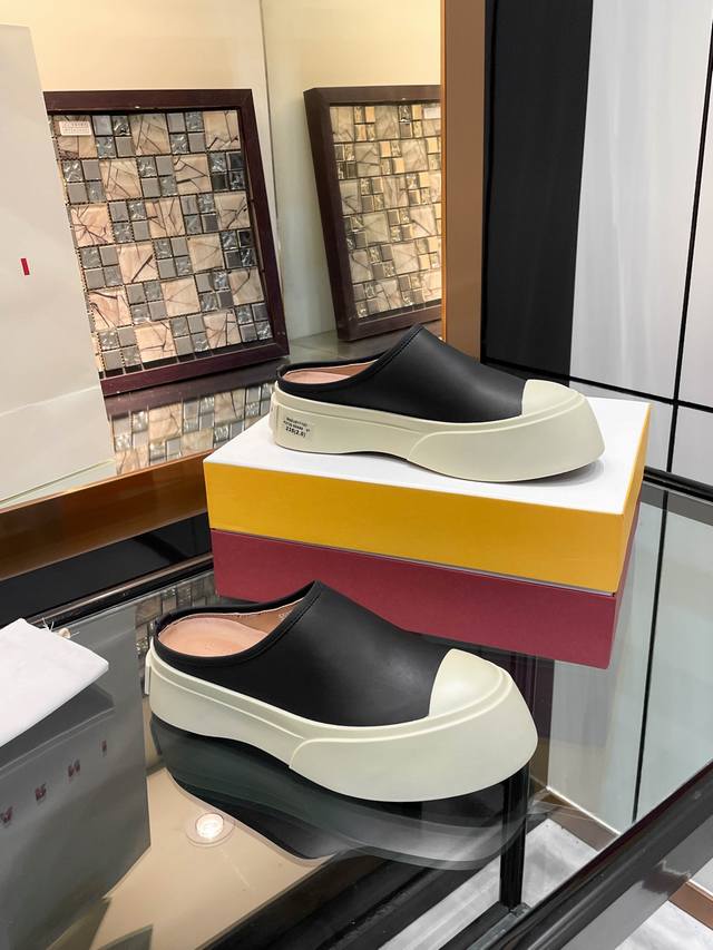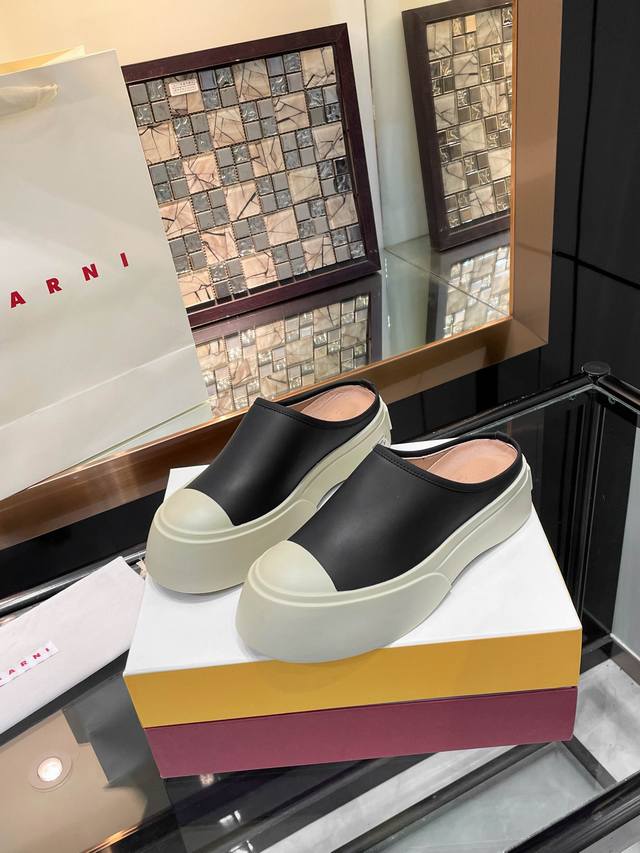 / 常年现货代购版跑量价皮面 Marni经典 Mona同款胖头半托厚底鞋最新彩色双盖包装 主推王炸单品 蠢萌蠢萌的一只 敲可爱又贼时髦的味道 上脚非常好看常规小白鞋