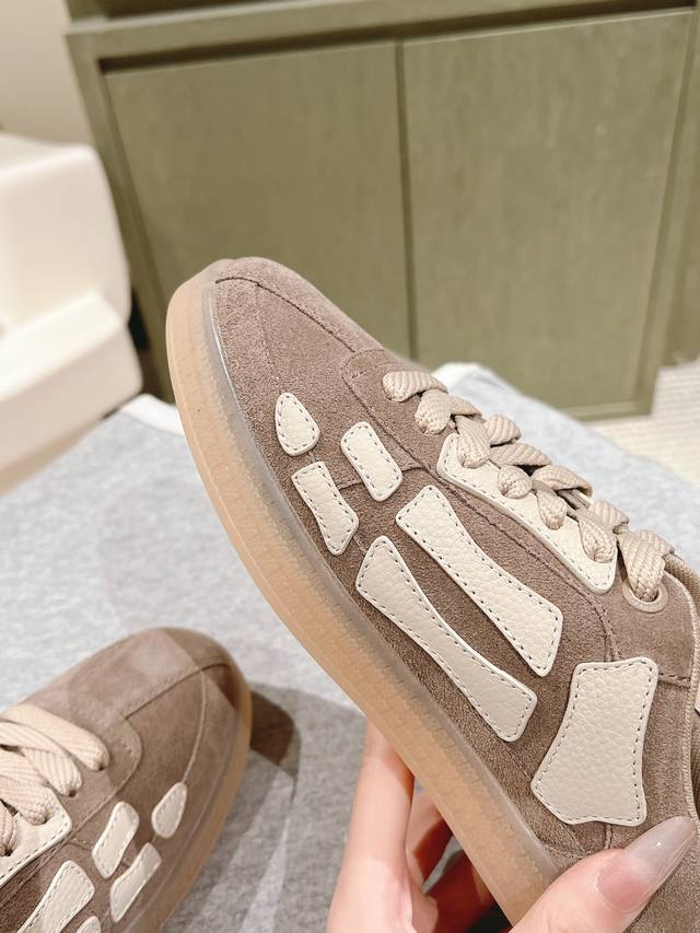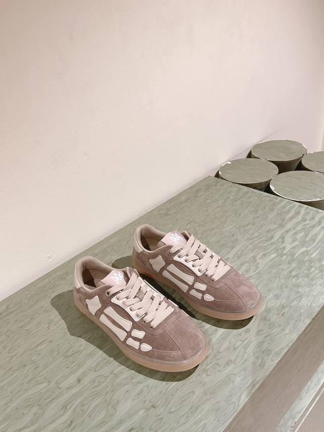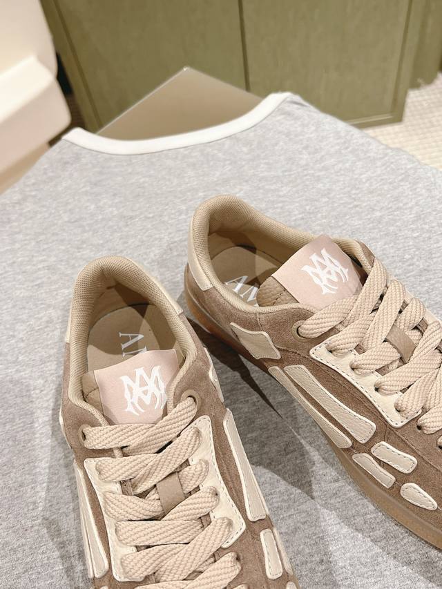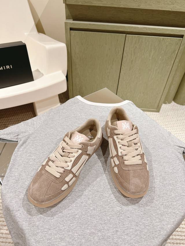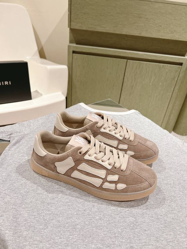 情侣款男10 225 #埃米尔新款 情侣款 休闲 运动鞋 板鞋 Amiri新一季放弃了摇滚朋克的风格 使用了大量不饱和色系,莫兰迪色调,无论是看到还是穿上, 都是会让人非常身心 愉悦 面包鞋的大鞋舌延续了下来,缩短了鞋身的长度,加厚了中底 鞋头部分更加圆润 Amiri的品牌字母和 Ma标识出现在鞋身侧面 面料 原版定制进口头层牛皮+网面 内里 原版定制透气毛巾里 大底 发泡组合tpu材质