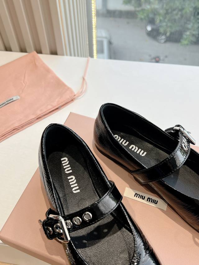 / 所见即所得g0286顶级版本 代购级别2025春夏时装周miu Miu谬谬新出的皮带扣玛丽珍芭蕾乐福鞋真的让人一整个心都融化除了中间夹着一颗钱币这种细节之外、鞋