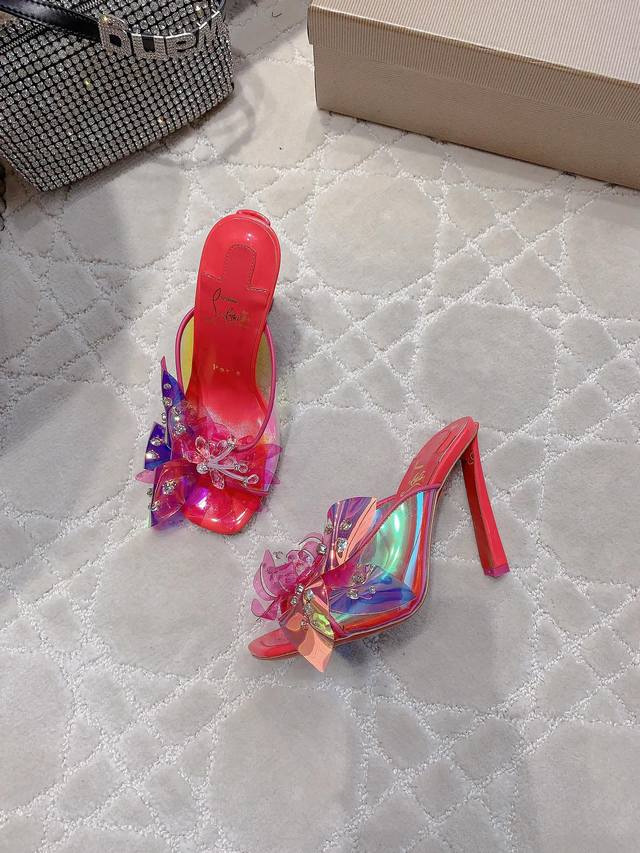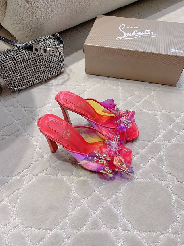 Christian Loubouti* 新款重工红底高跟凉鞋 纯手工缝制胶片花朵 水钻点缀精致奢华 闪耀夺目 富贵迷人 交织出童话般的梦境