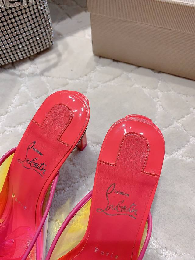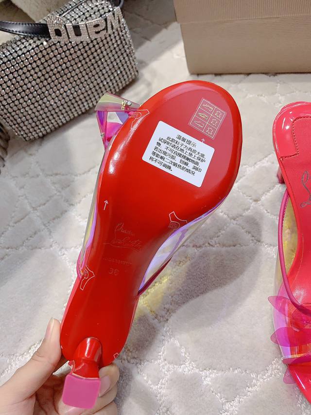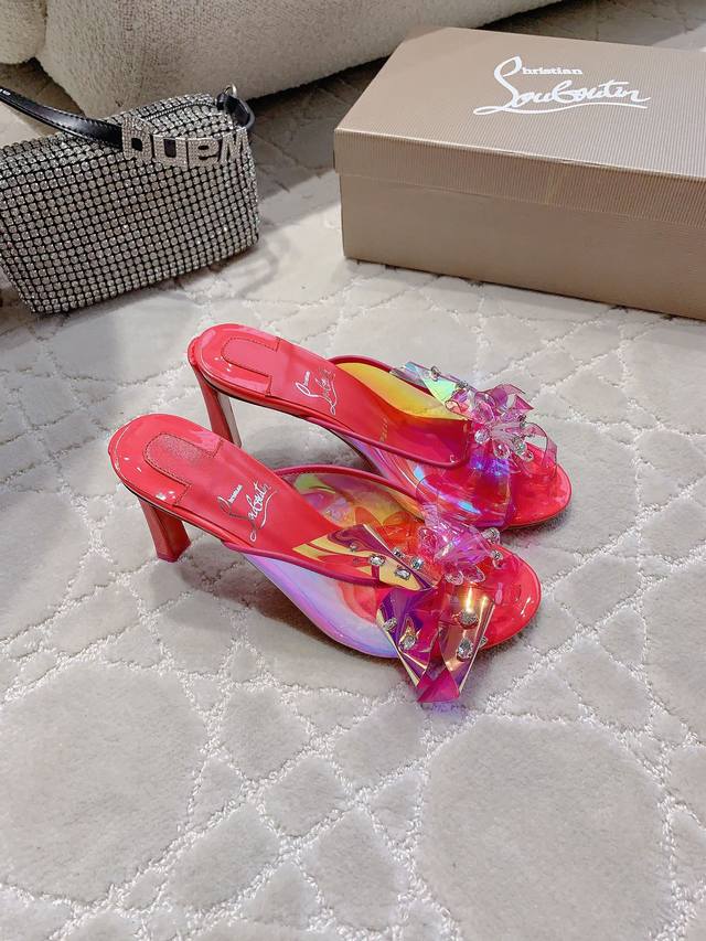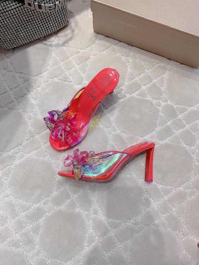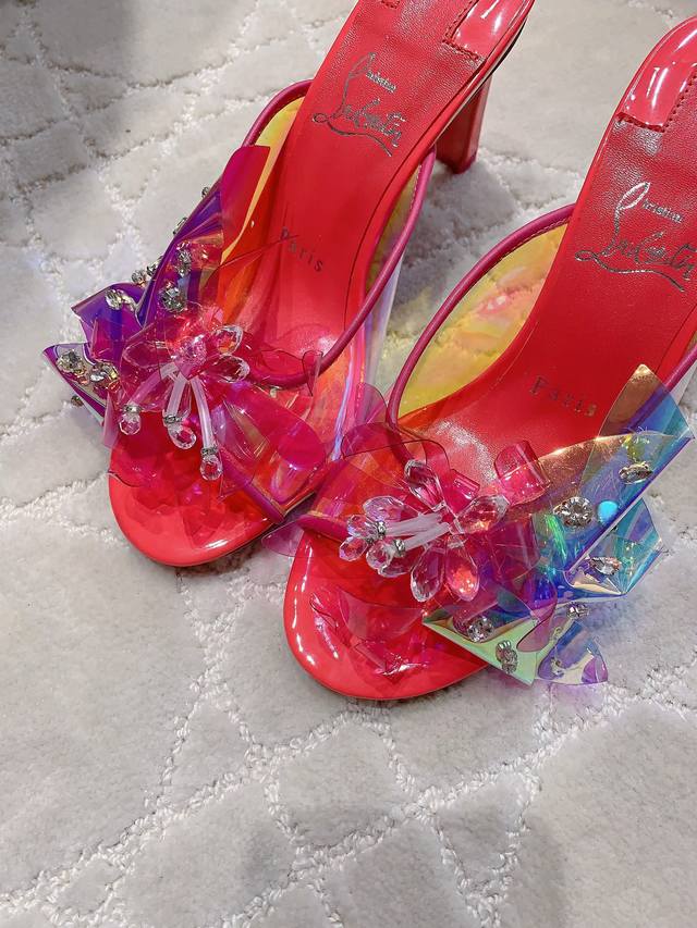 拖鞋 凉鞋 Christian Loubouti* 新款重工红底高跟凉鞋 纯手工缝制胶片花朵 水钻点缀精致奢华 闪耀夺目 富贵迷人 交织出童话般的梦境 垫脚羊皮