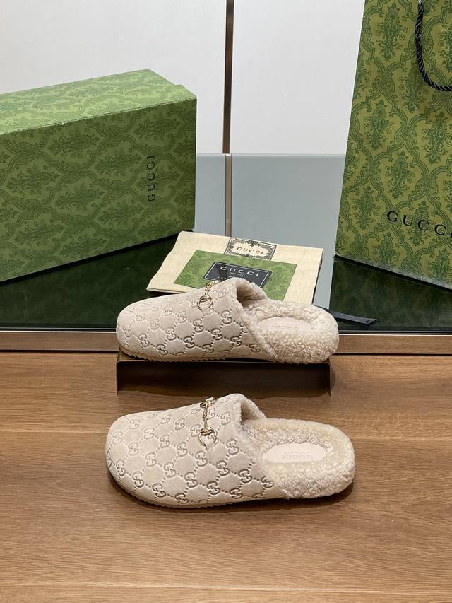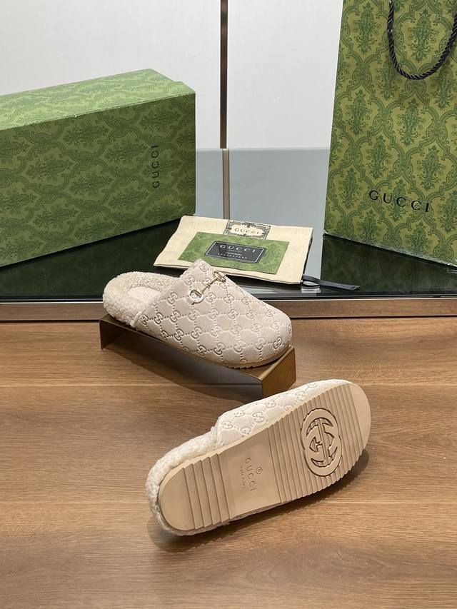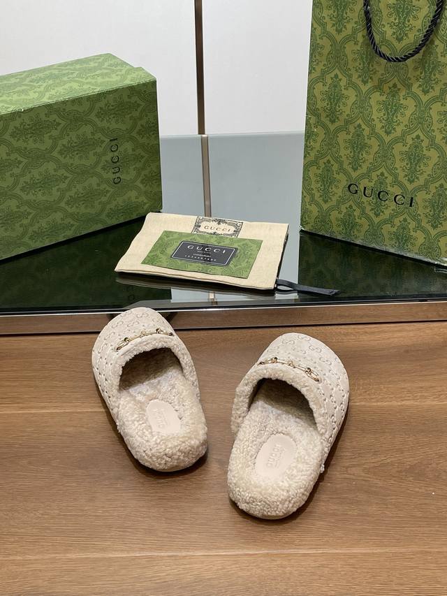 新品厚底gucci马衔扣g G男女同款情侣羊毛穆勒鞋 美利奴羊毛拖鞋 官网同步,原版一比一复制,最高版本所有材质细节均与yb一致 常年做货。