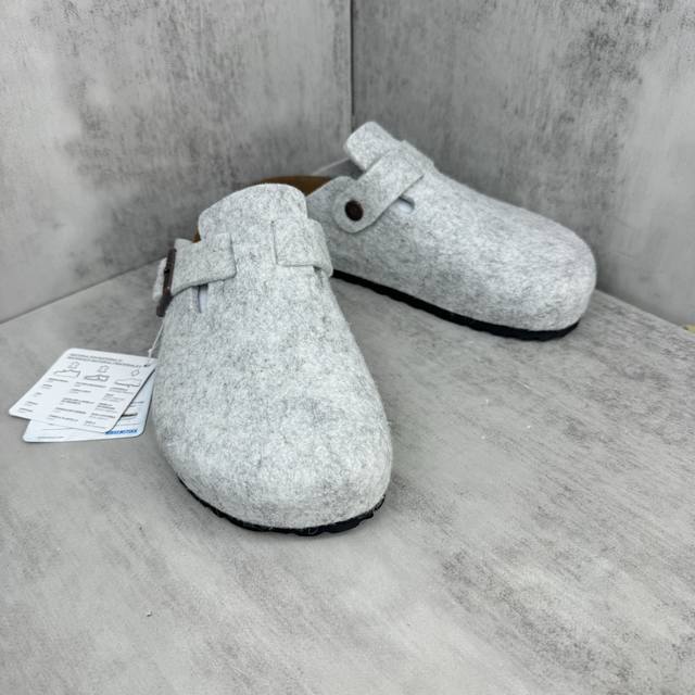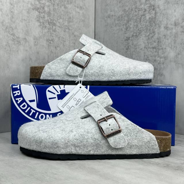 新款上架 顶级品质 Birkenstock 博肯 羊毛毡软木包头拖鞋 人体工程学设计符合脚形的脚床,软木材质穿着超级轻便舒适,略显慵懒的休闲感觉 面料:纯羊毛毡 垫脚:牛反毛皮 大底:真软木脚床+Eva 码数:35-44码 原盒包装