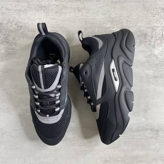 新款上架dior Homme Sneaker B22 情侣款运动老爹鞋 采用针织面+3M反光面+皮革面 混搭撞色面料设计 Md组合轻质耐磨大底 B22款鞋舌 侧