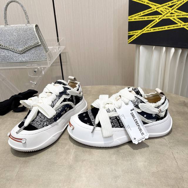/ 新款乞丐鞋上架 Smilerepublic 厚底开口笑帆布鞋系列 檀健次,李晨,徐璐,程潇,王霏霏同款,以“Smile”为灵感来源 主打柔软的帆布设计 有裁切的