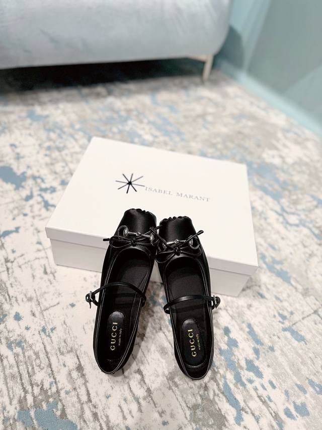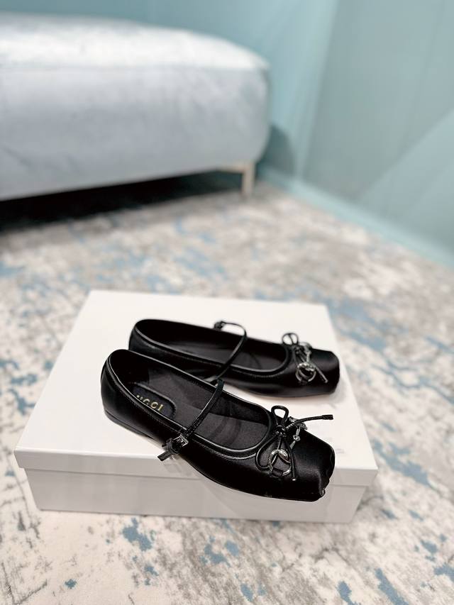 / 新款芭蕾舞单鞋 面料 真丝 内里 羊皮 鞋底 牛皮 优雅风格 创造不一样的感觉 跟高 1 Cm 专柜包装 简约气质款式! Show Bdetails Size.