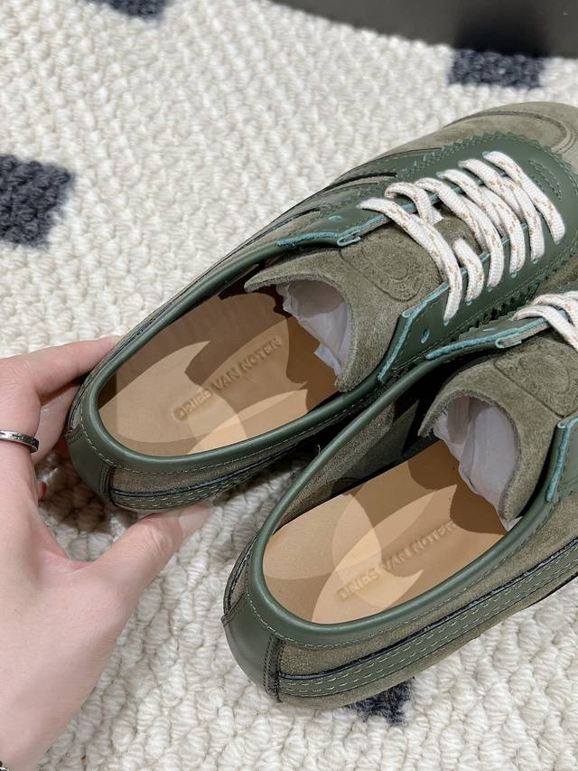 Dries Van Noten 马拉松运动鞋, 春夏系列,设计师通过改造、扭曲和颠覆经典元素,打造出实用而富有设计感实穿的运动鞋履。新一季的麂皮运动鞋,灵感来源于70年代的马拉松竞技运动。鞋型以马拉松运动鞋为设计原型,搭配极具生命力色彩的绿色、红色、橙色等 Dvn代表性的色彩,鞋面由麂皮、柔软牛皮等材质拼接而成,并搭配今年流行的尼龙扭绳鞋带,实用性与时尚性得到完美的平衡!