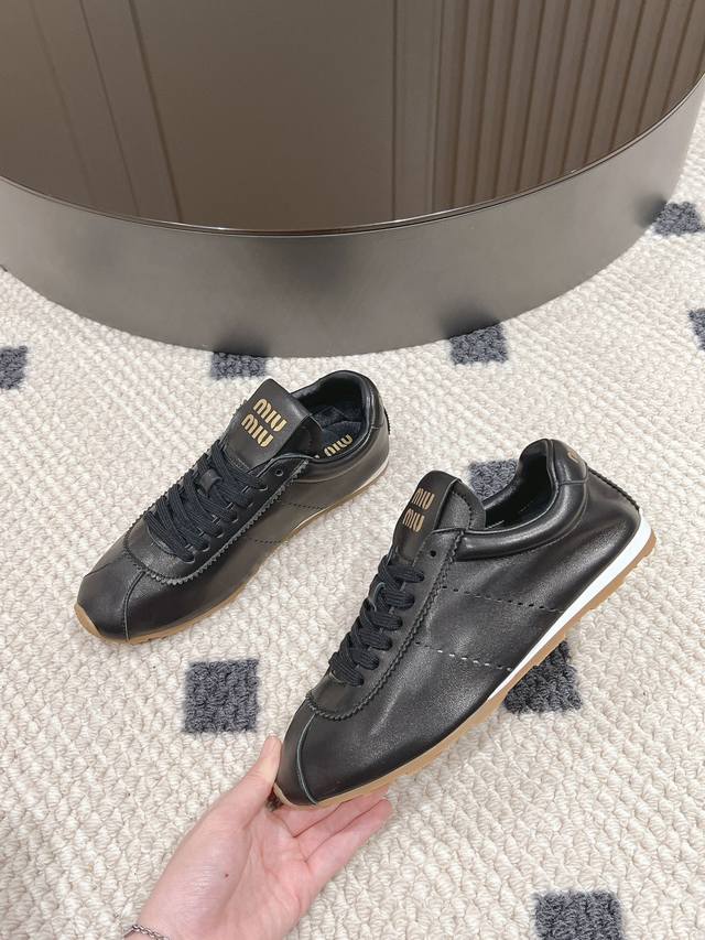 / 新色 。35-40 Miumiu2024 早春走秀新款阿甘德训鞋运动鞋, 巨巨巨好穿的德训鞋,缪缪这款2024,早春走秀款德训鞋,简单很随意不羁 复古颜值满分