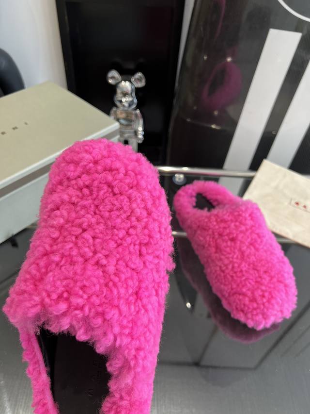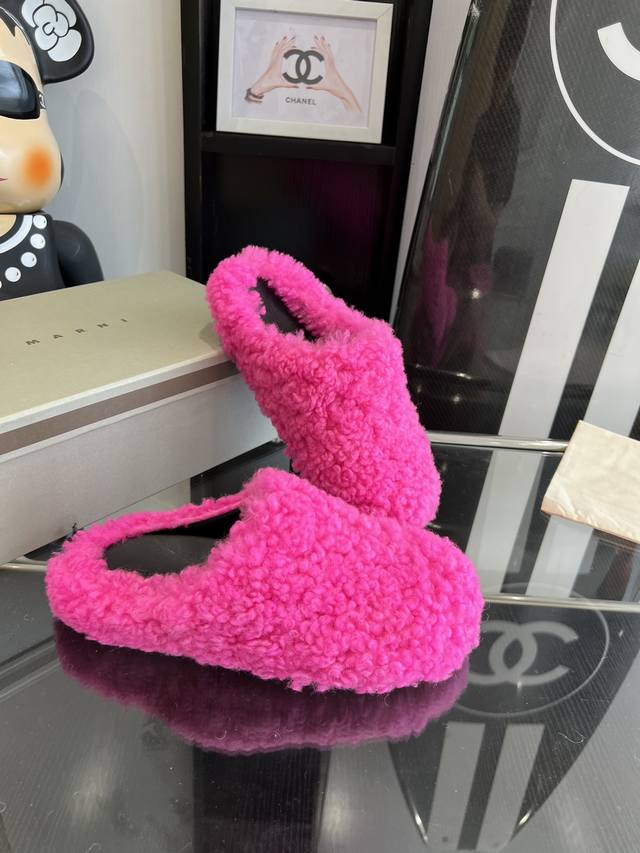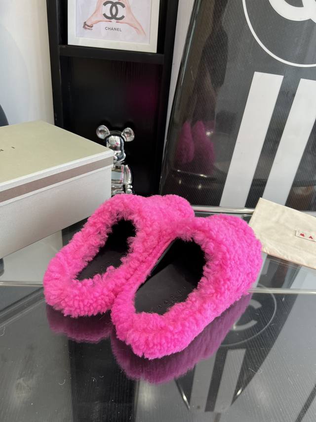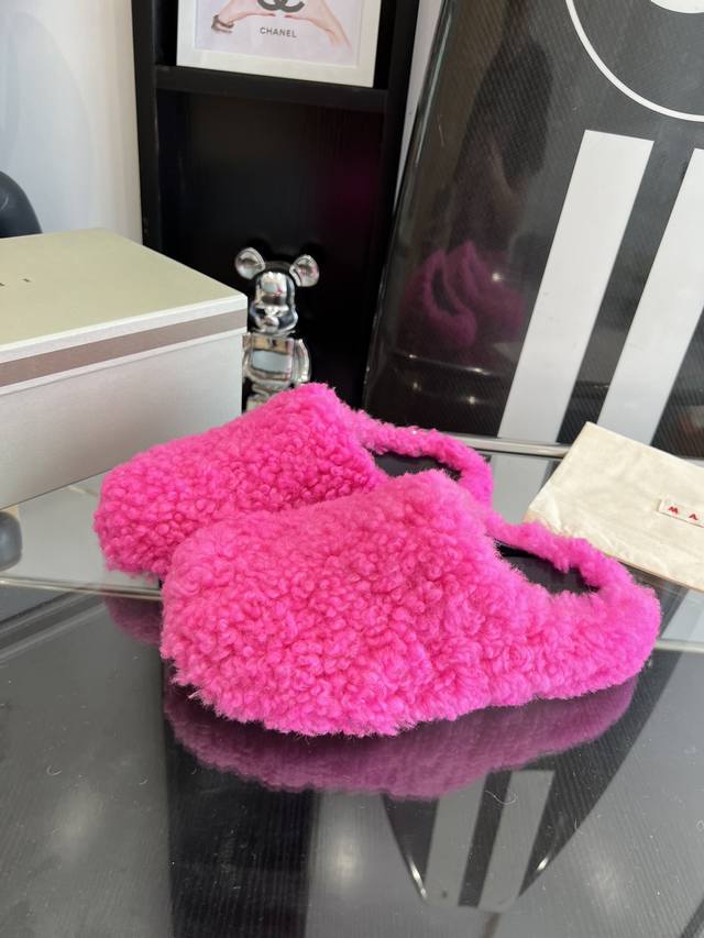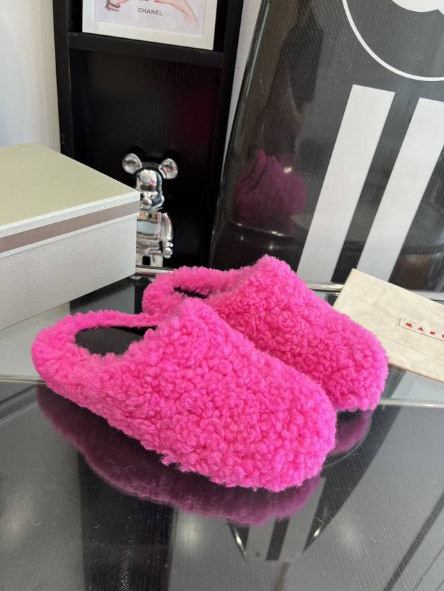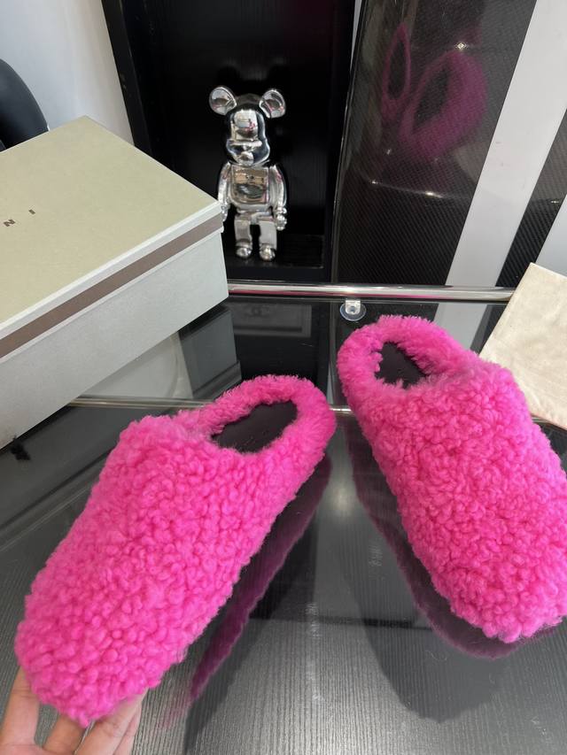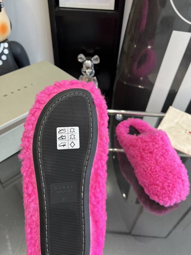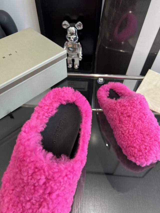 新配色 Marni 玛尼 情侣款羊毛拖 羊羔毛圆头半托鞋具有北欧风情简约百搭,真的很炸!尤其适合现在混搭的季节,搭上一双别致的小长袜,上脚非常好看 码数:35-