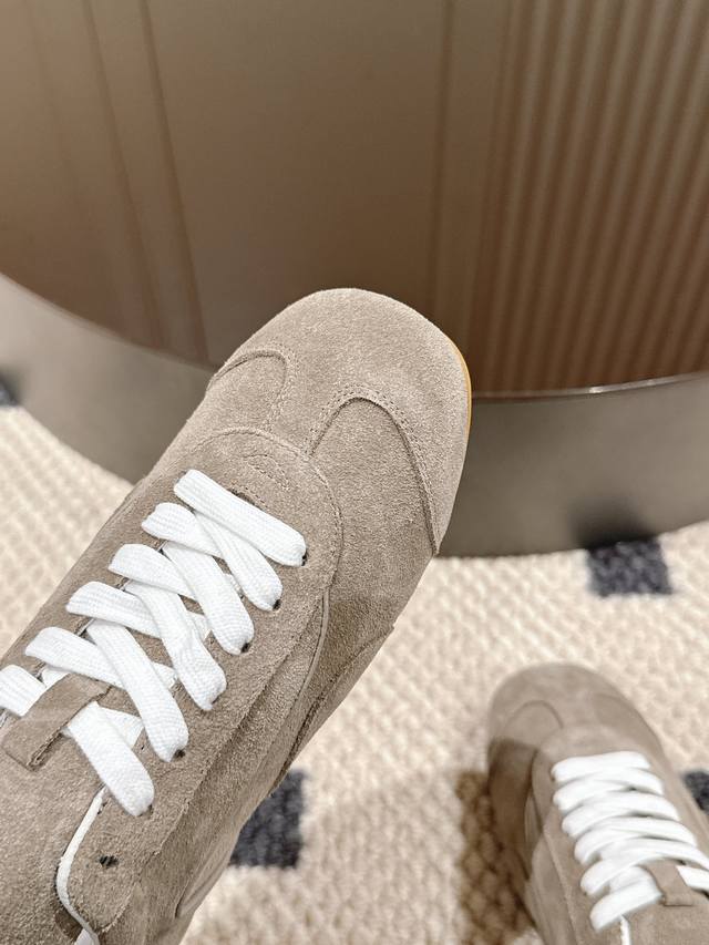 新款德训鞋,选用标志性金黄色橡胶材质,鞋底搭配细腻超丝光牛反绒面料,直至柔软羊皮内里,更加防滑耐磨,轻盈的体验感,适配于生活的不同场景需求,日常、通勤、漫步、轻量运动皆可获得人体工学的穿着体验!