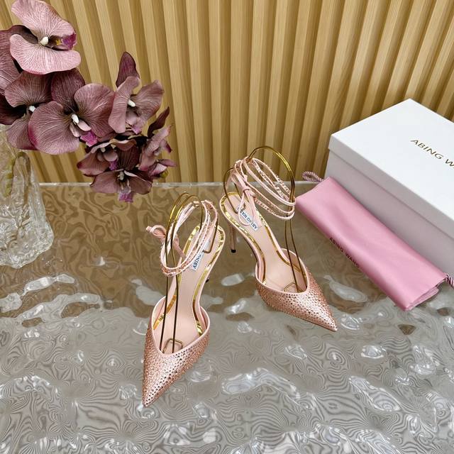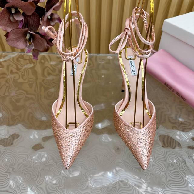 春夏爆款 Abing Wang真丝水钻高跟鞋