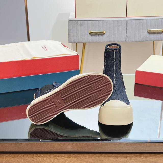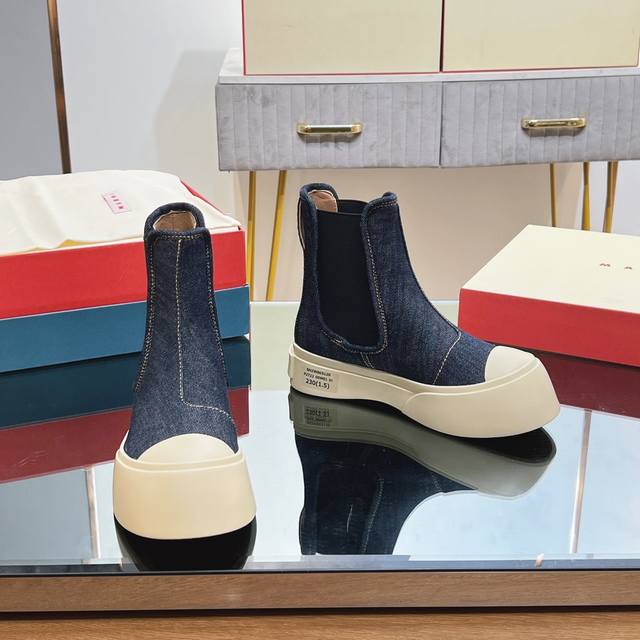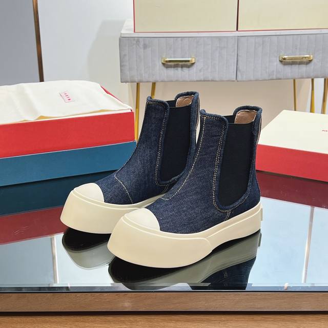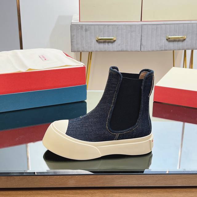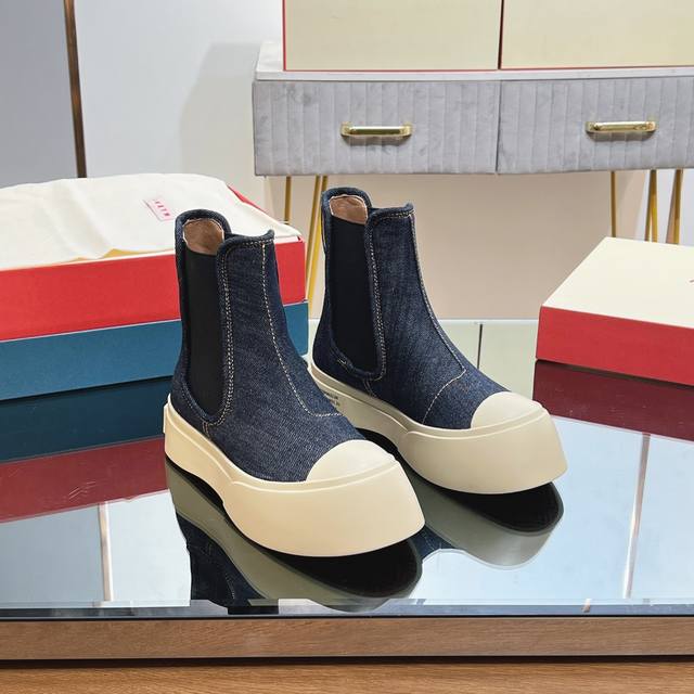 情侣款marni 玛尼赵露思同款大头鞋女丑萌厚底大头短靴切尔西靴