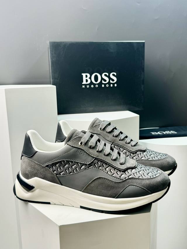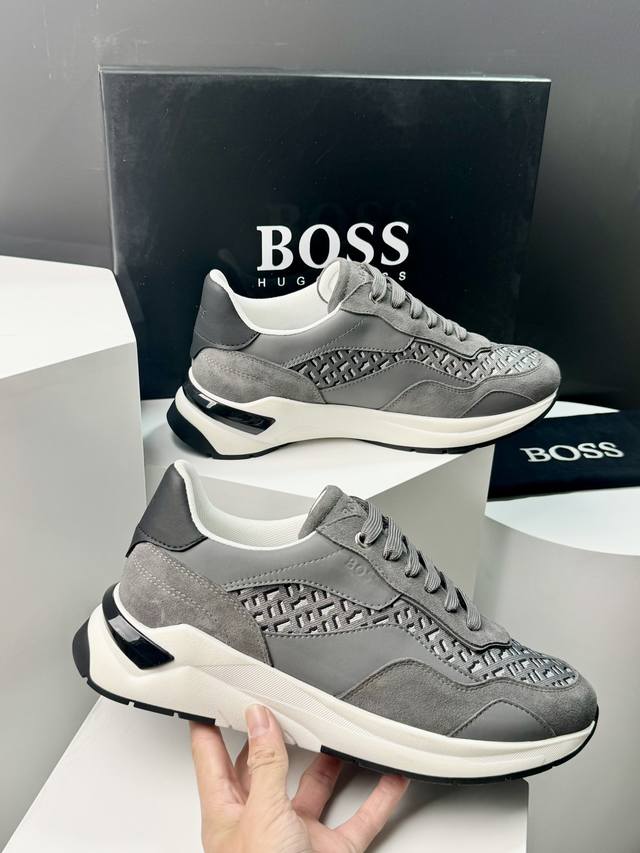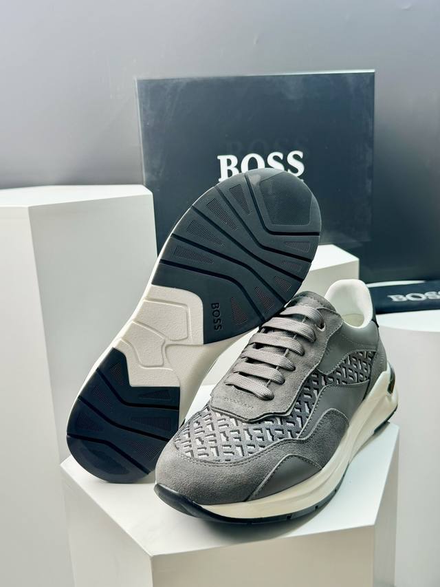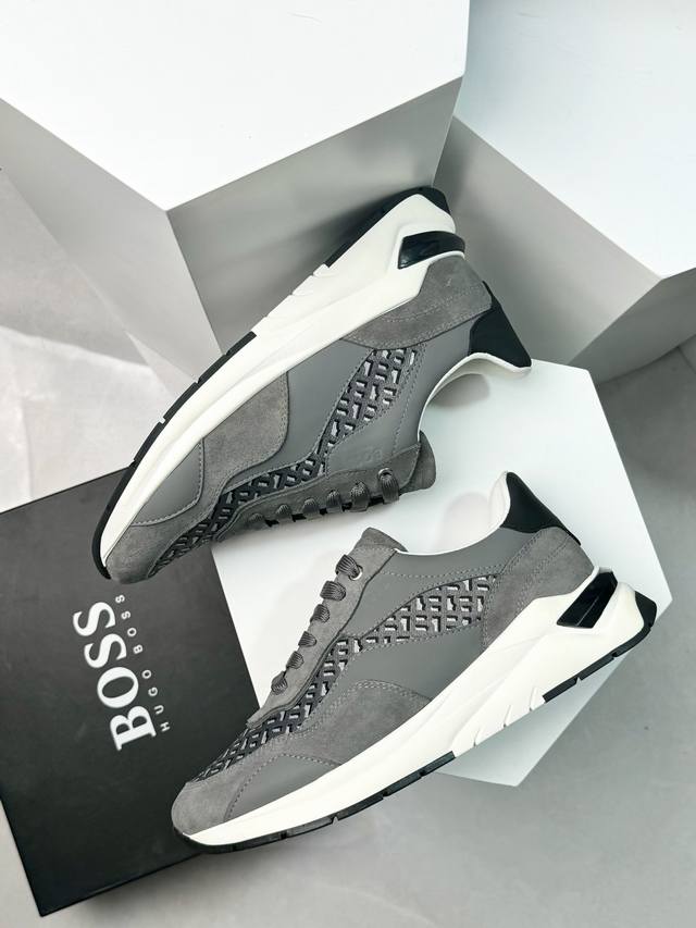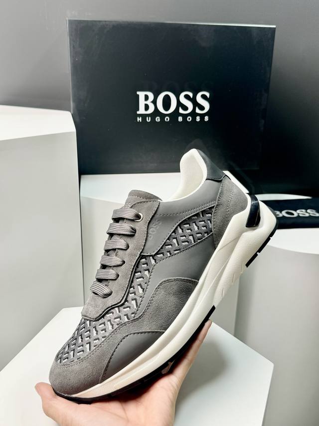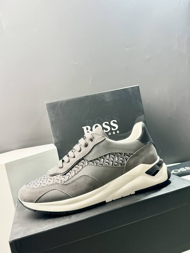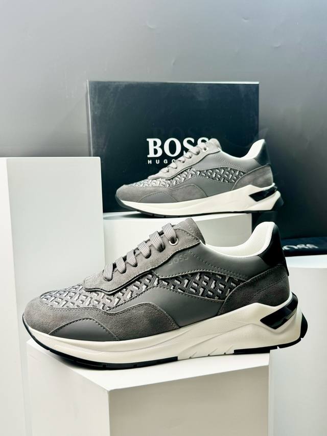 最新boss男士休闲运动鞋,头层牛皮压花,纯棉透气网里不闷脚 上脚柔软舒适 Tpu大底脚感轻便! Size:38-44 45 46定做