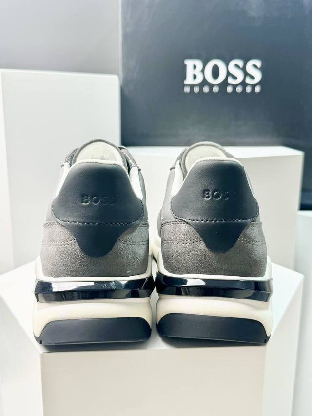 最新boss男士休闲运动鞋,头层牛皮压花,纯棉透气网里不闷脚 上脚柔软舒适 Tpu大底脚感轻便!