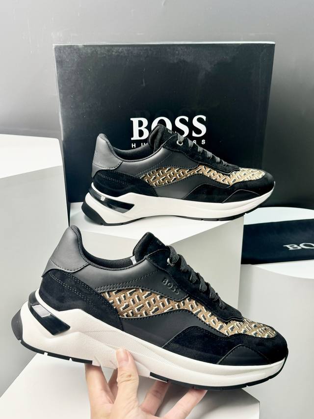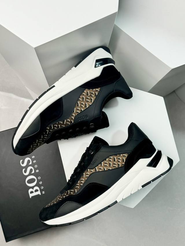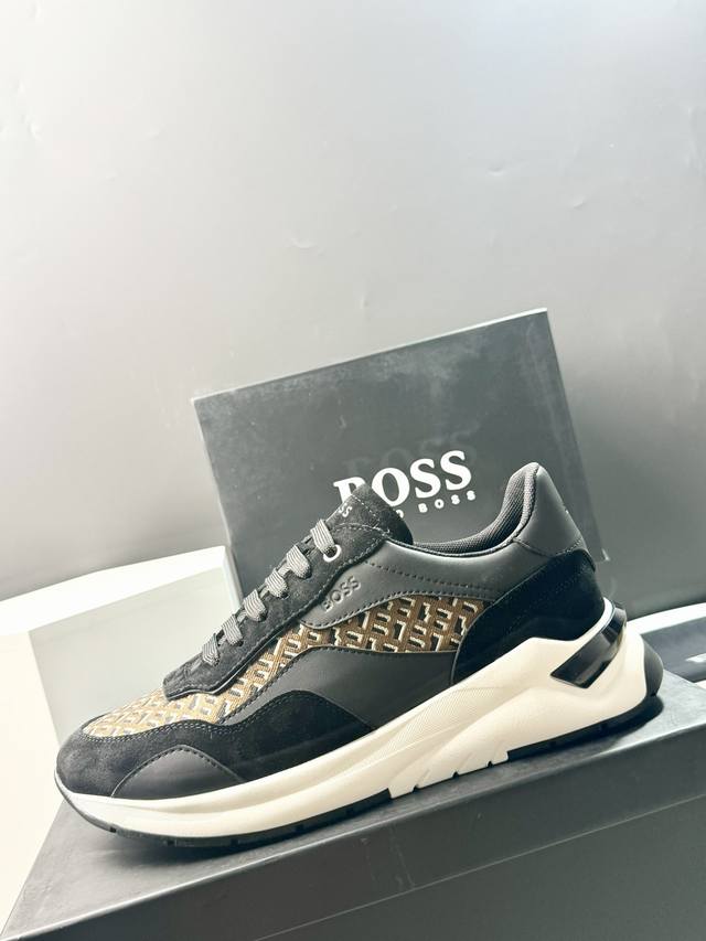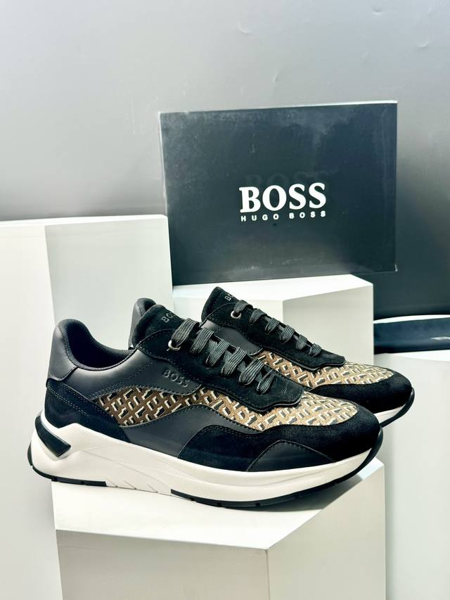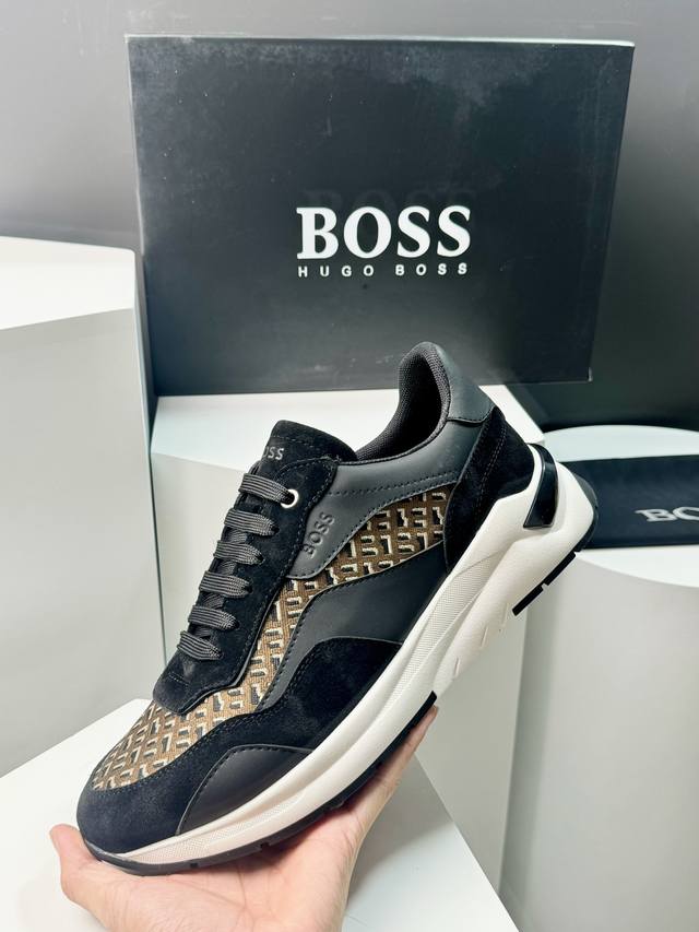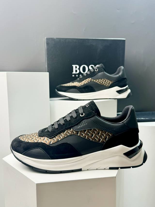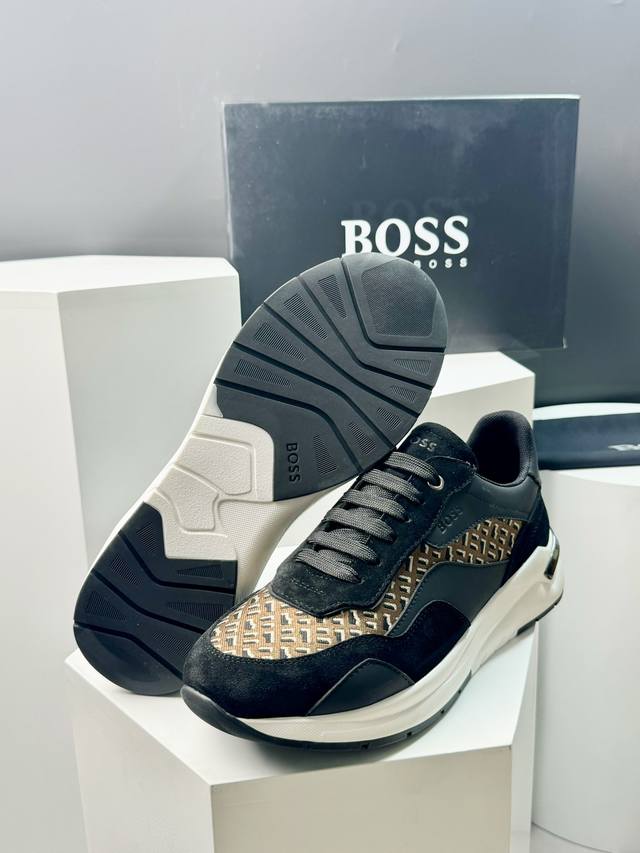 最新boss男士休闲运动鞋,头层牛皮压花,纯棉透气网里不闷脚 上脚柔软舒适 Tpu大底脚感轻便! Size:38-44 45 46定做