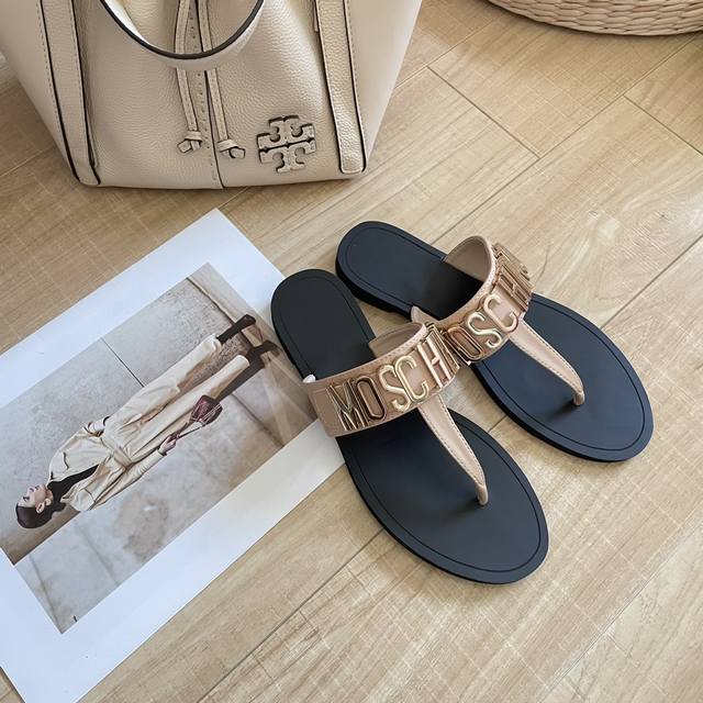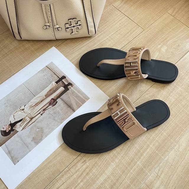 橙子出厂价 Moschino 早春新款 字母扣平底人字拖 夹脚拖鞋 码数:35-42
