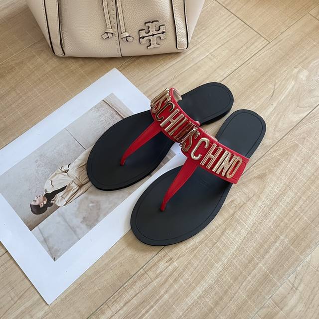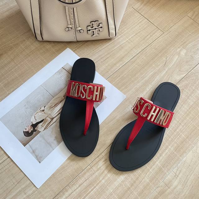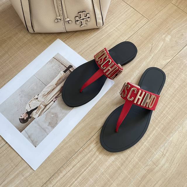 橙子出厂价 Moschino 早春新款 字母扣平底人字拖 夹脚拖鞋 码数:35-42