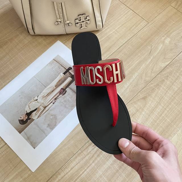 Moschino 早春新款 字母扣平底人字拖 夹脚拖鞋
