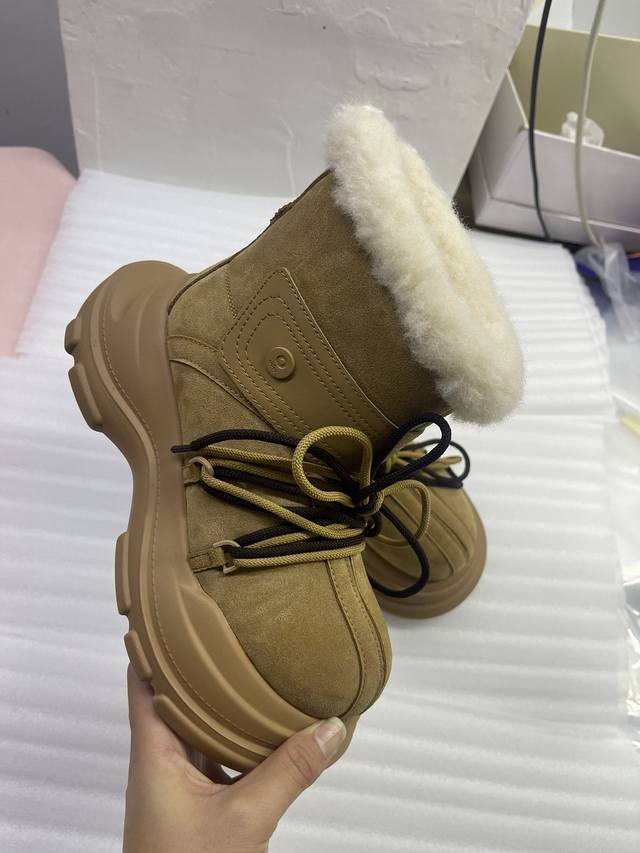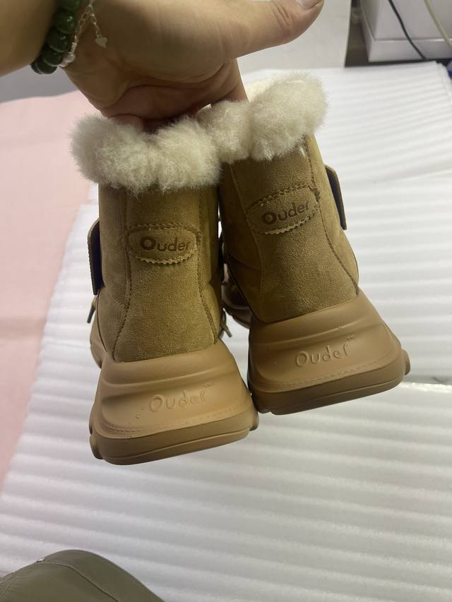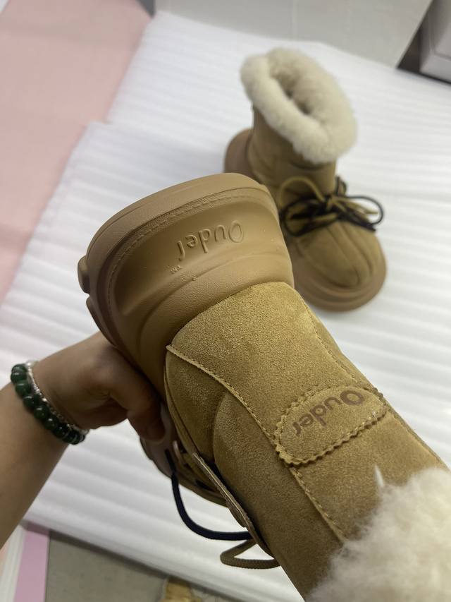 橙子出厂价 Ouder 秋冬新款 大头雪地靴 系带厚底短靴 毛毛靴 码数:35-40