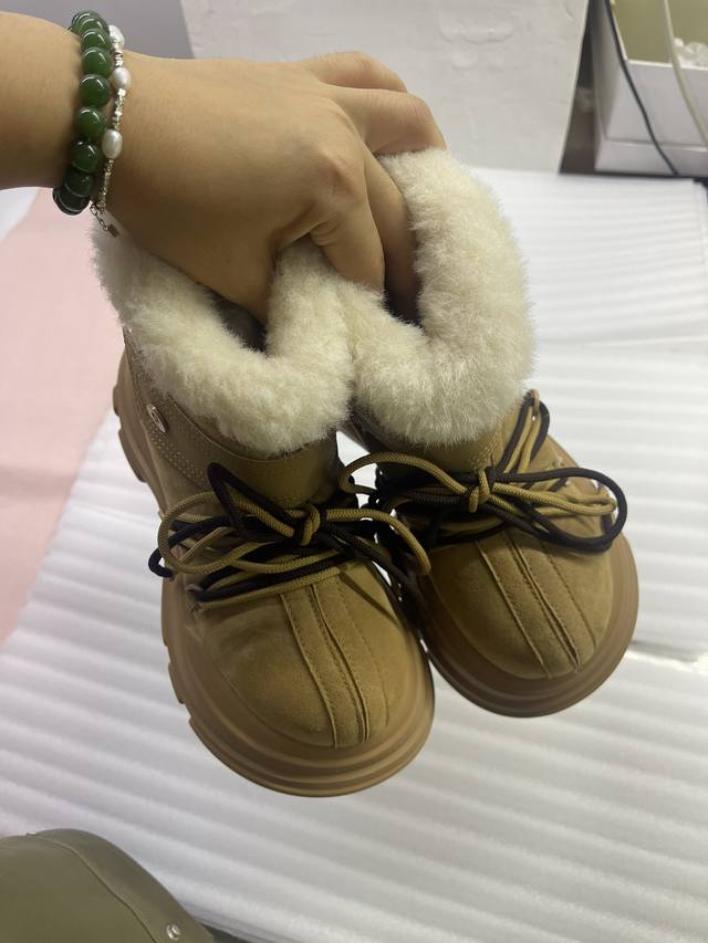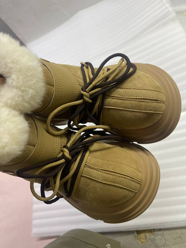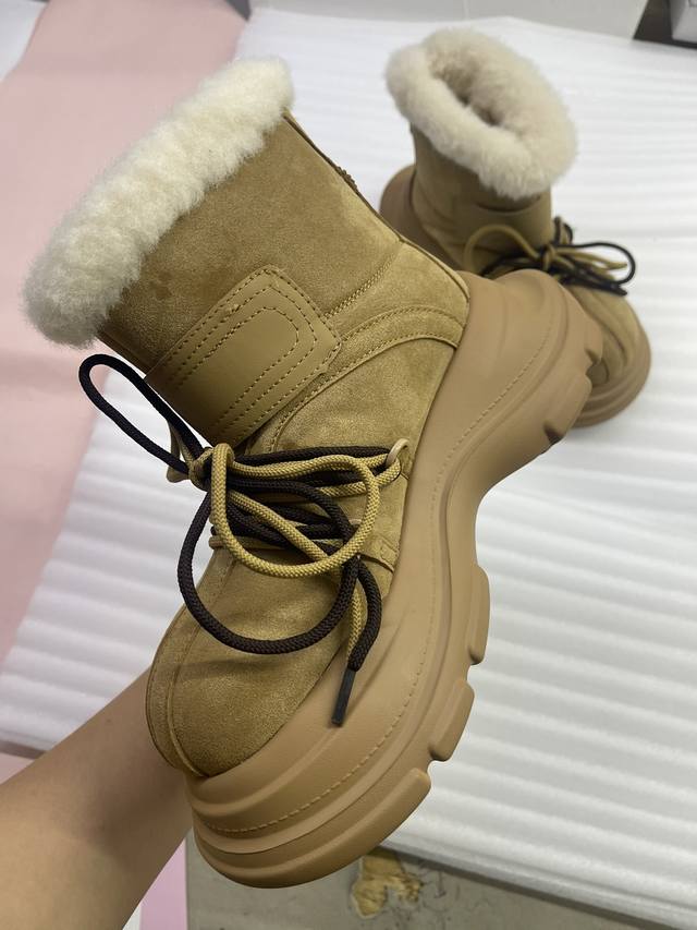 Ouder 秋冬新款 大头雪地靴 系带厚底短靴 毛毛靴