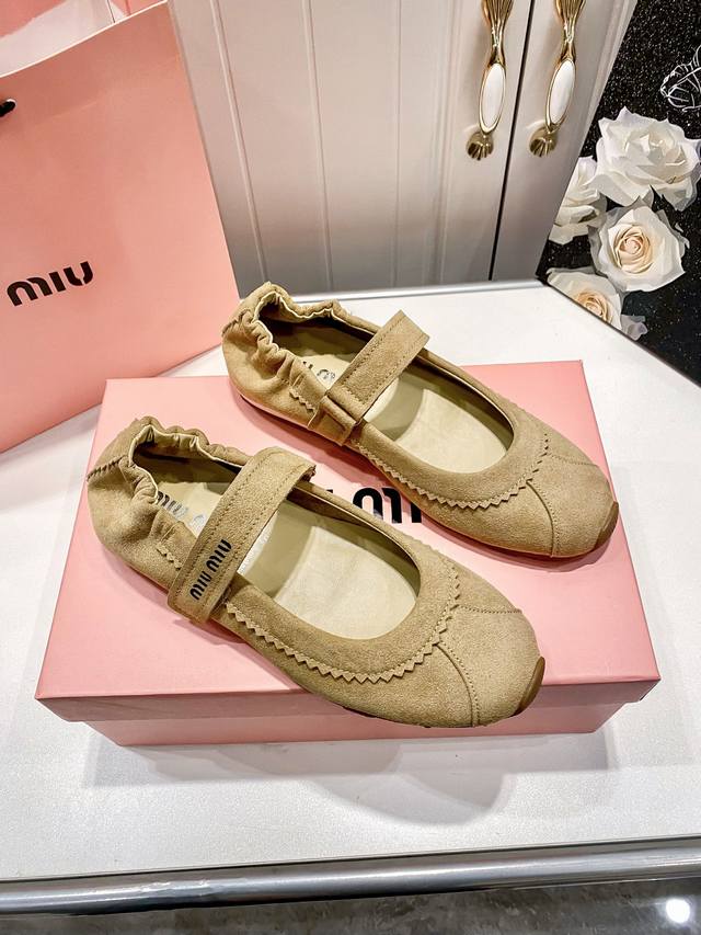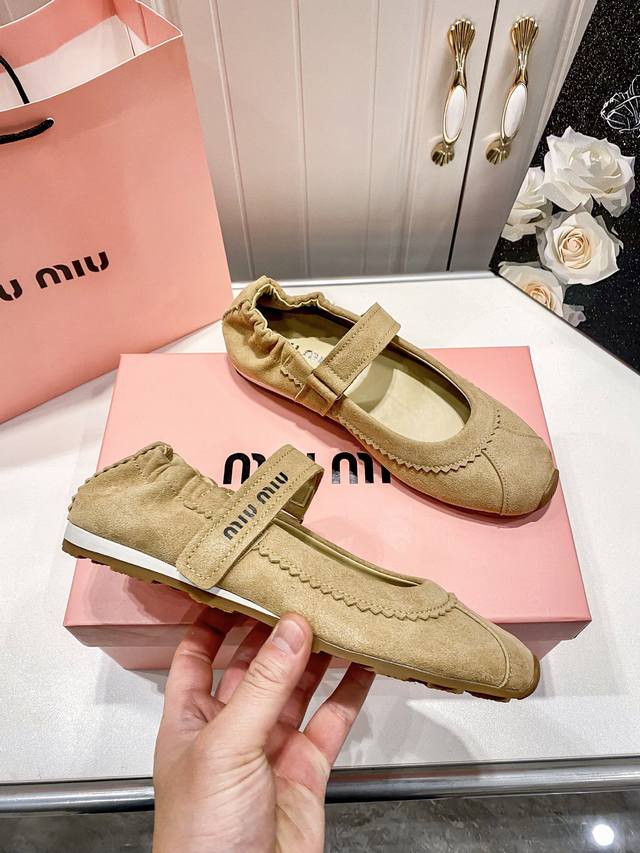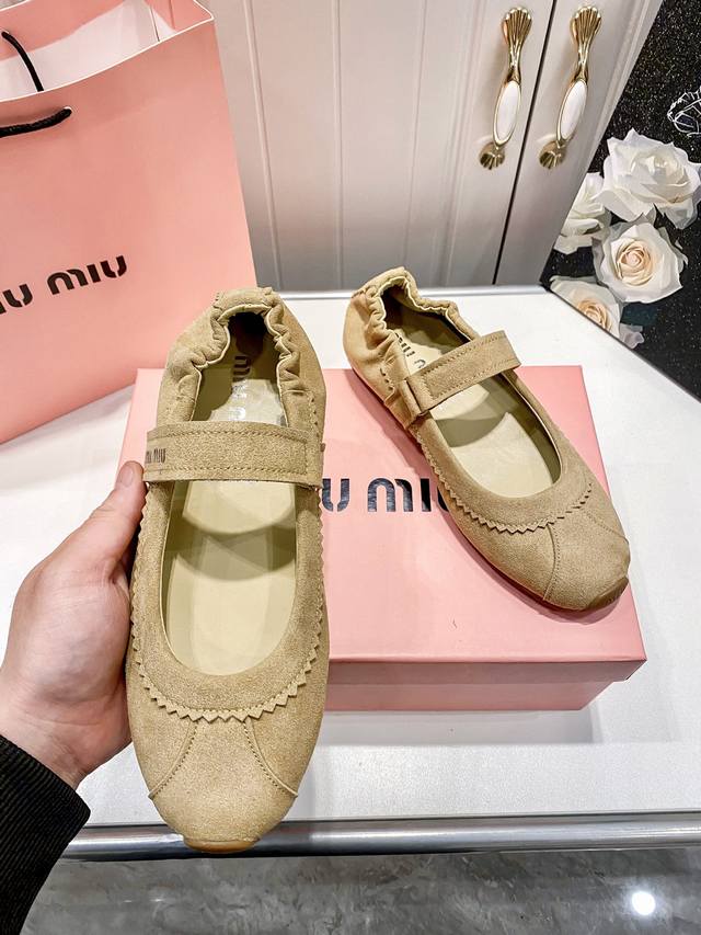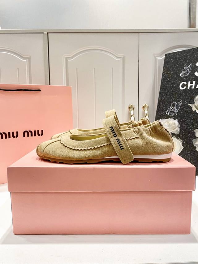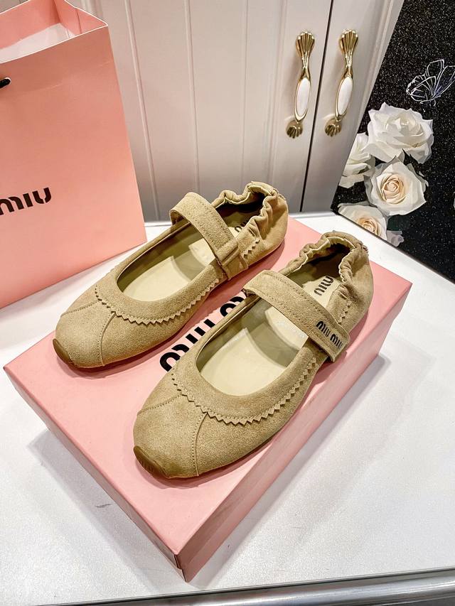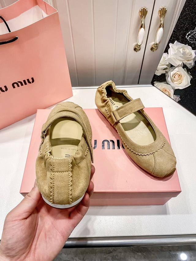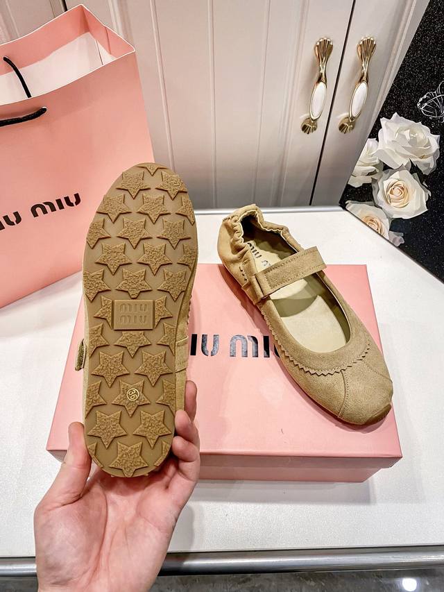 Miumiu 缪缪 春夏新款 一字带平底鞋 芭蕾舞鞋 平底单鞋 真皮版本