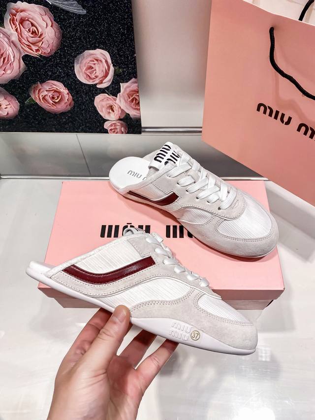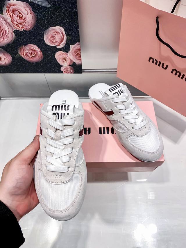 Miumiu 缪缪 春夏新款 拼色休闲运动鞋包头拖 德训鞋半拖